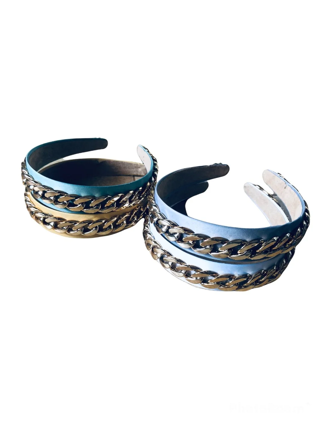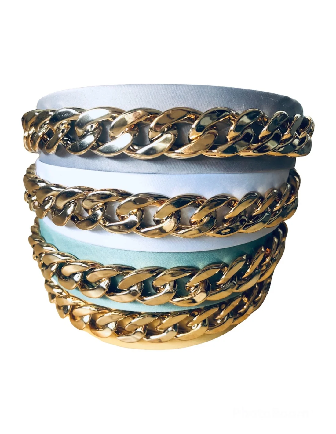 Γυναικεία σατέν στέκα με χοντρή επίχρυση αλυσίδα σε 4 αποχρώσεις.
