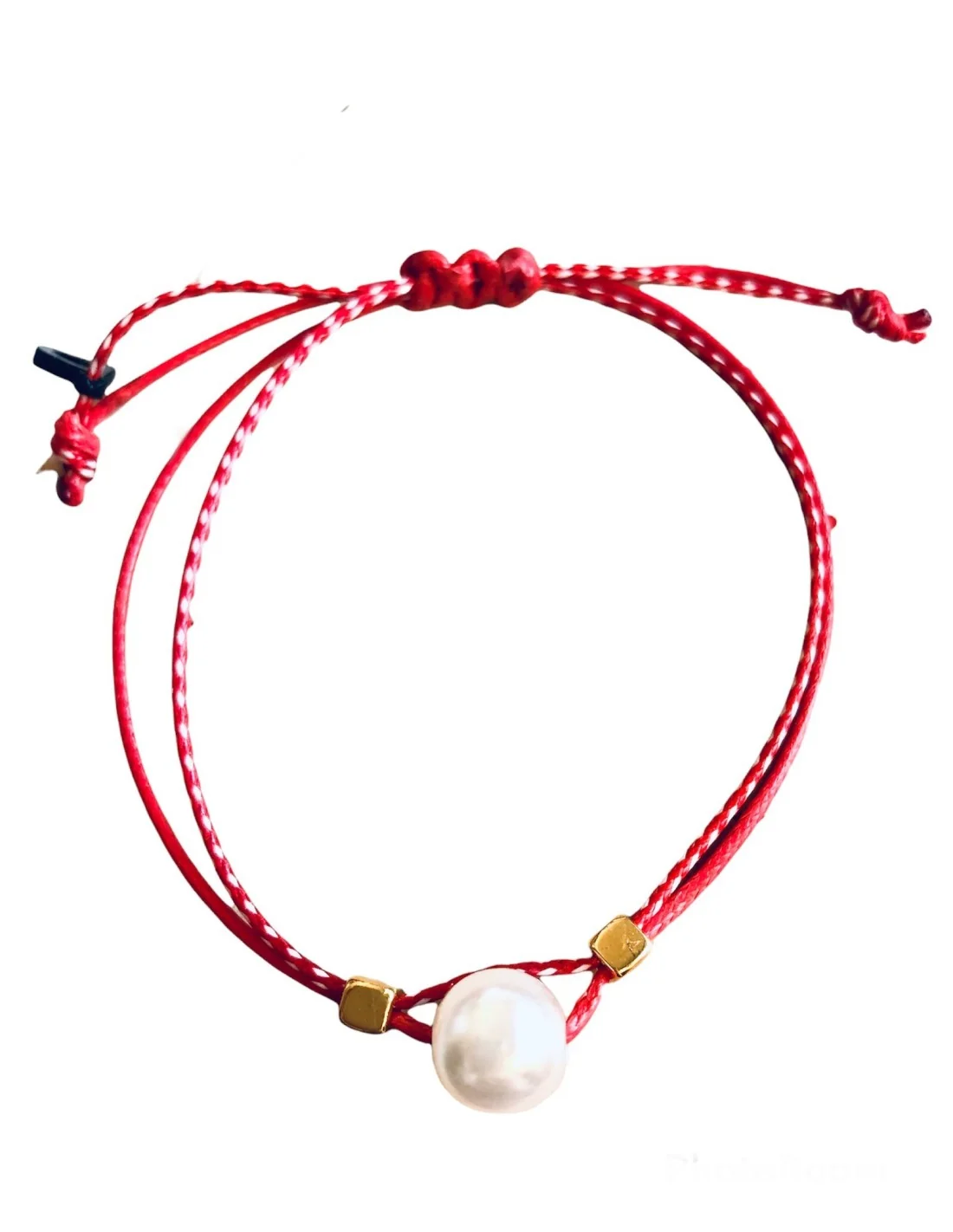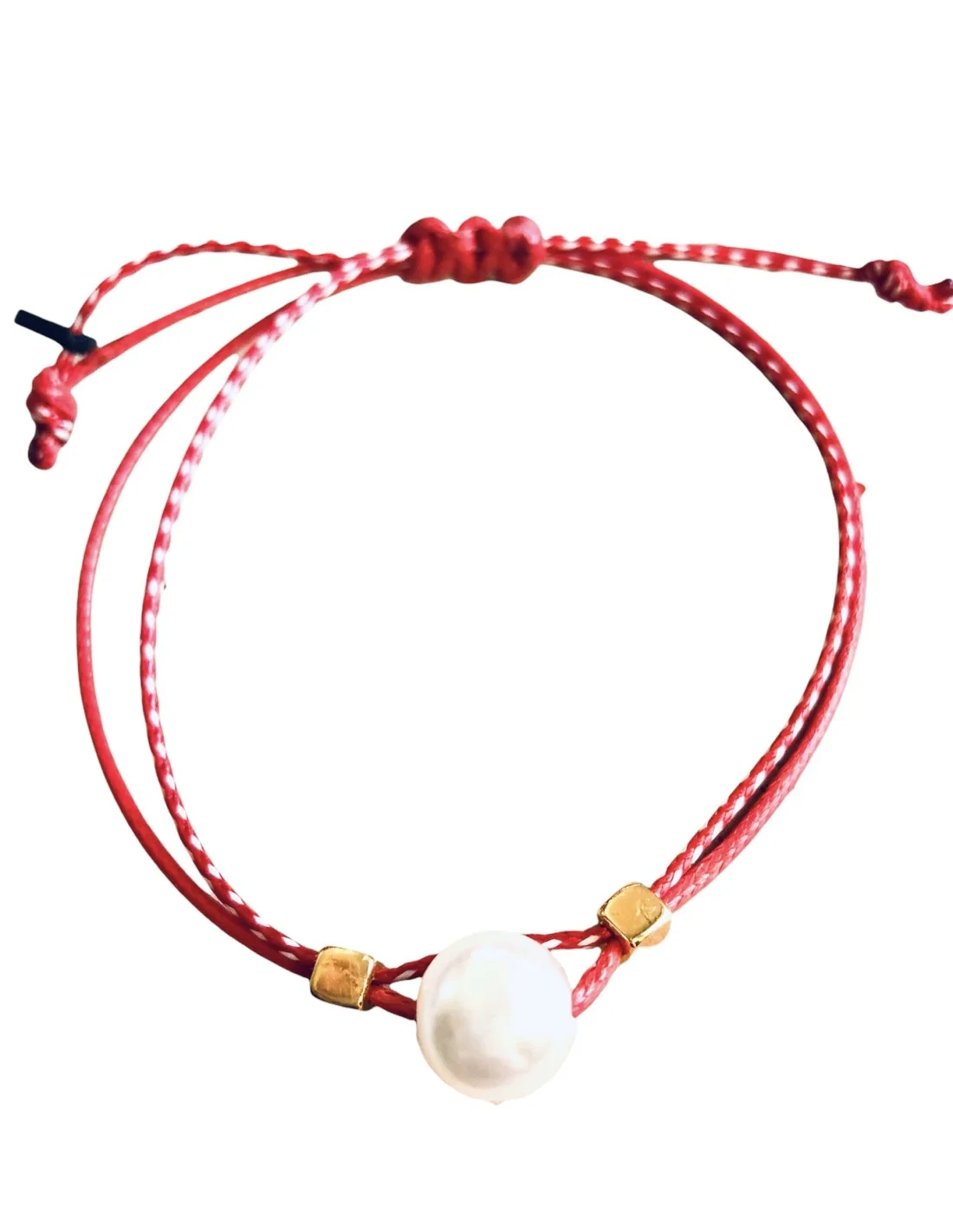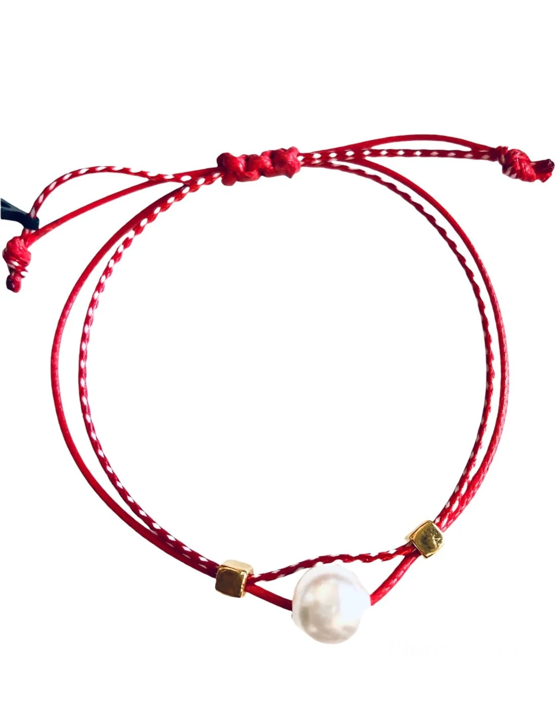 Χειροποίητο βραχιόλι μαρτάκι με πέρλα και επίχρυσα κυβάκια σε δίχρωμο κορδόνι σε λευκό και κόκκινο Perla