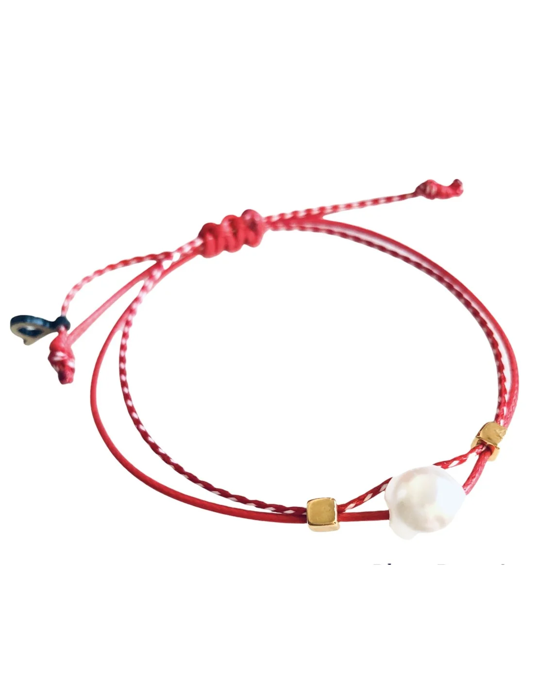 Το χειροποίητο βραχιόλι μαρτάκι Perla συνδυάζει την κομψότητα της πέρλας με τη μοντέρνα εμφάνιση των επίχρυσων κυβακίων. Πρόκειται για ένα βραχιόλι που φέρει την τύχη του Μαρτίου και είναι ιδανικό για να προσθέσετε μία διακριτική και κομψή πινελιά στο στυλ σας.