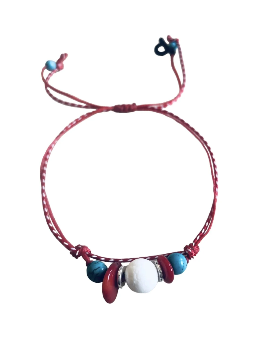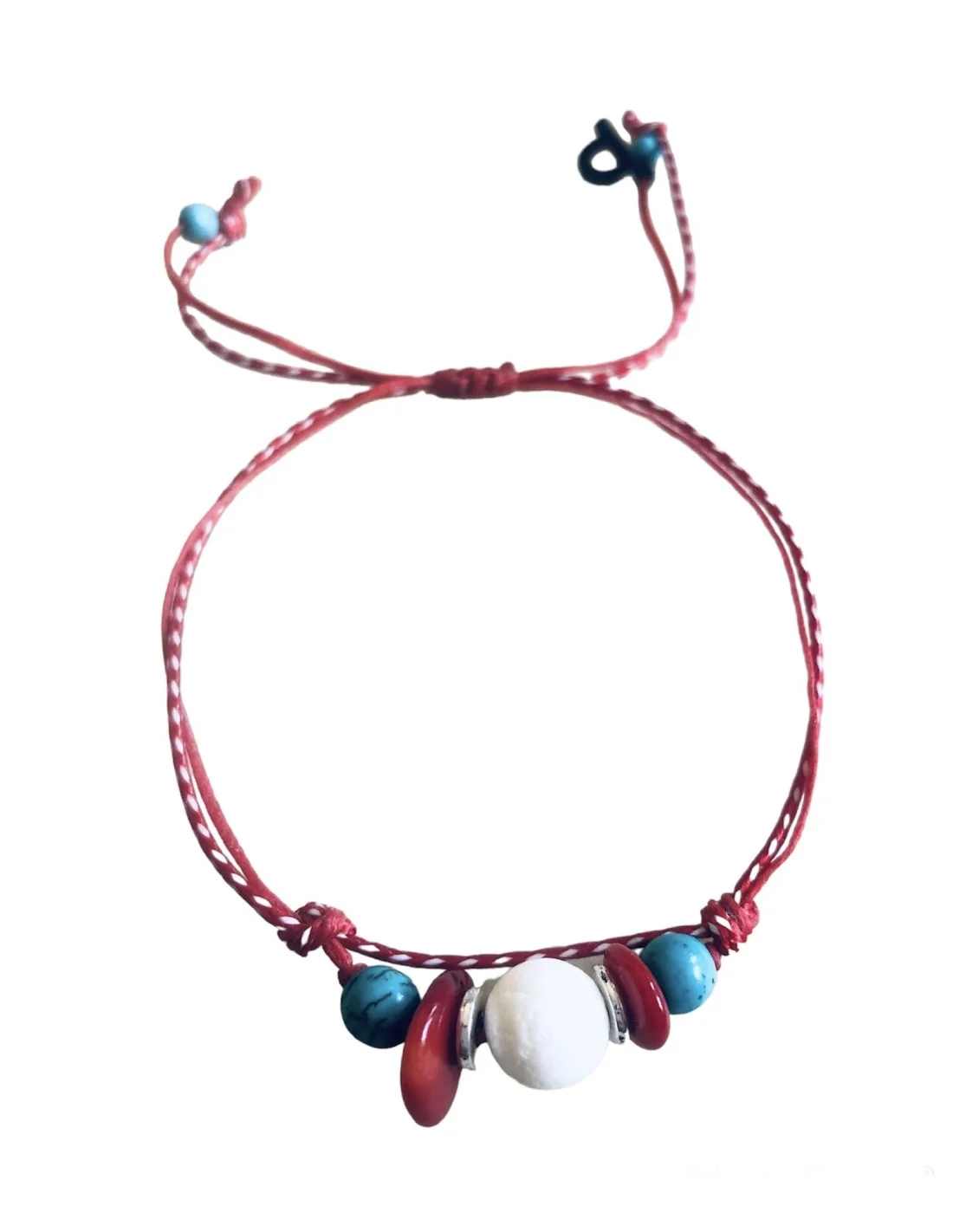 Δεν υπάρχουν άλλα προϊόντα στο καλάθι σαςΧειροποίητο βραχιόλι μαρτάκι με πέτρα από Χαολίτη, chips από κοράλι και ροδέλες από ατσάλι σε δίχρωμο κορδόνι Sunny days