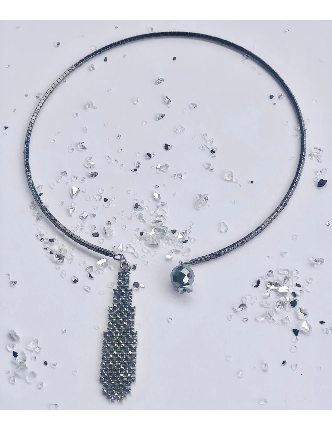 Χειροποίητο γυναικείο κολιέ choker από ατσάλι, κρεμαστή πέτρα Αιματίτη και στοιχείο με στρας Arizona