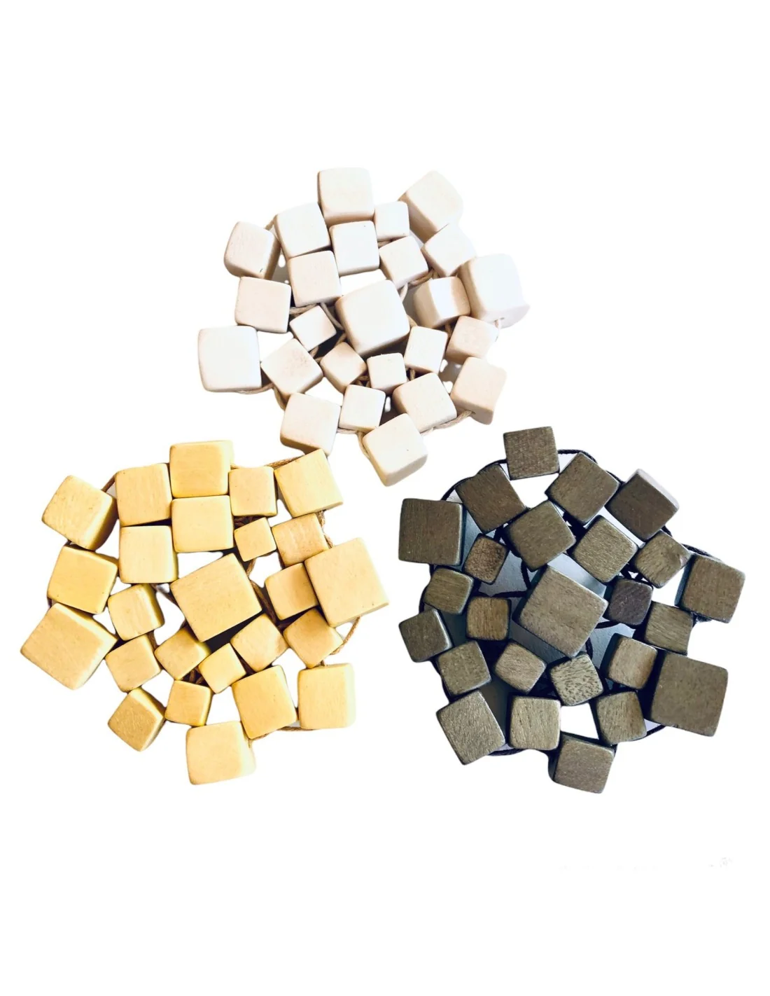 - Ξύλινα τετράγωνα στοιχεία σε τρείς αποχρώσεις για να διαλέξετε την πιο αγαπημένη σας ή να δημιουργήσετε την τέλεια σύνθεση.