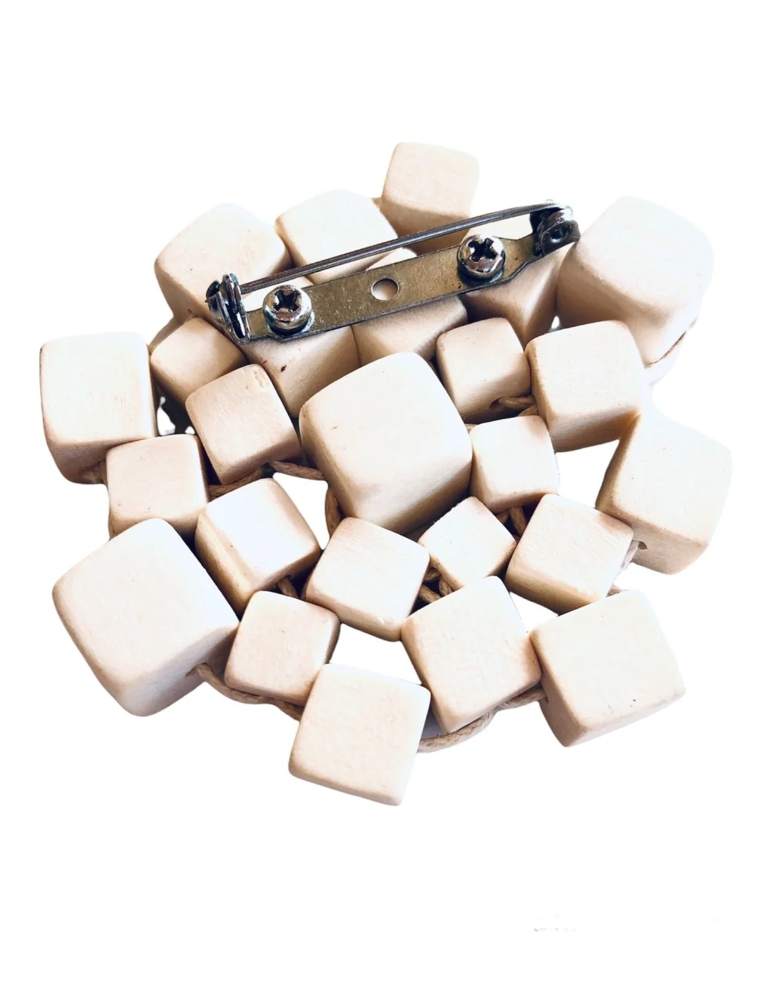 Η Simona είναι μια χειροποίητη γυναικεία καρφίτσα που συνδυάζει την φυσική ομορφιά του ξύλου με την εκλεπτυσμένη κατασκευή. Σχεδιασμένη με τετράγωνα στοιχεία σε τρείς μοναδικές αποχρώσεις, αυτή η καρφίτσα προσδίδει μία κομψή και φυσική αίσθηση σε κάθε εμφάνιση. Το ξύλο και το μέταλλο συνεργάζονται αρμονικά για να δημιουργήσουν ένα κομψό αξεσουάρ που θα κλέψει την παράσταση.
