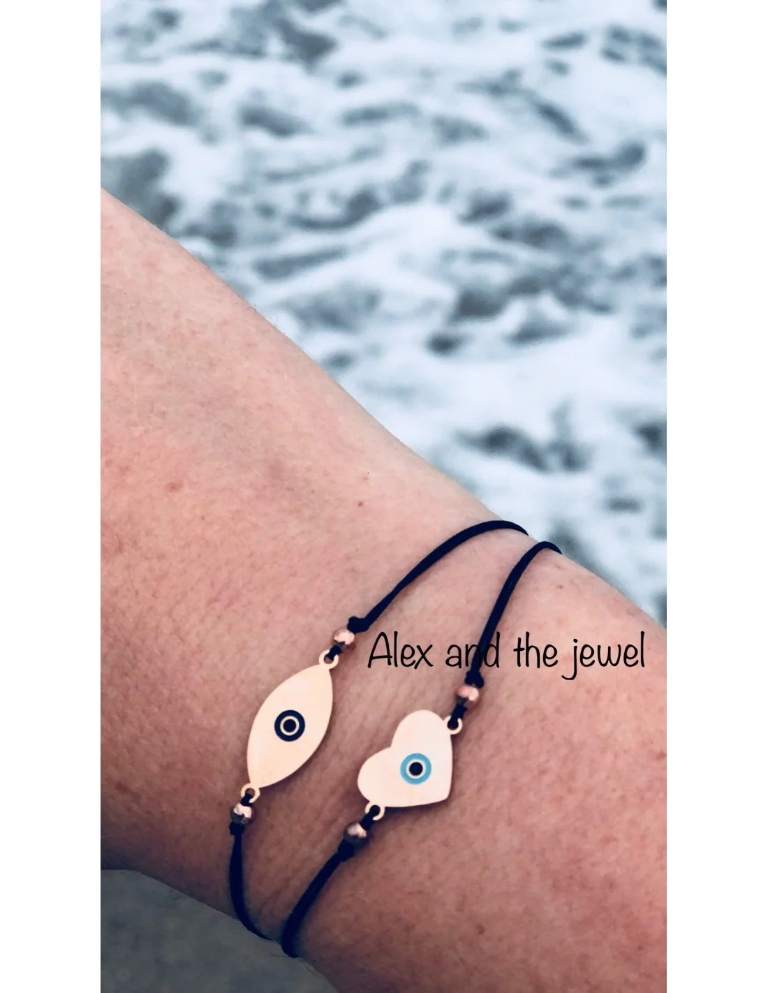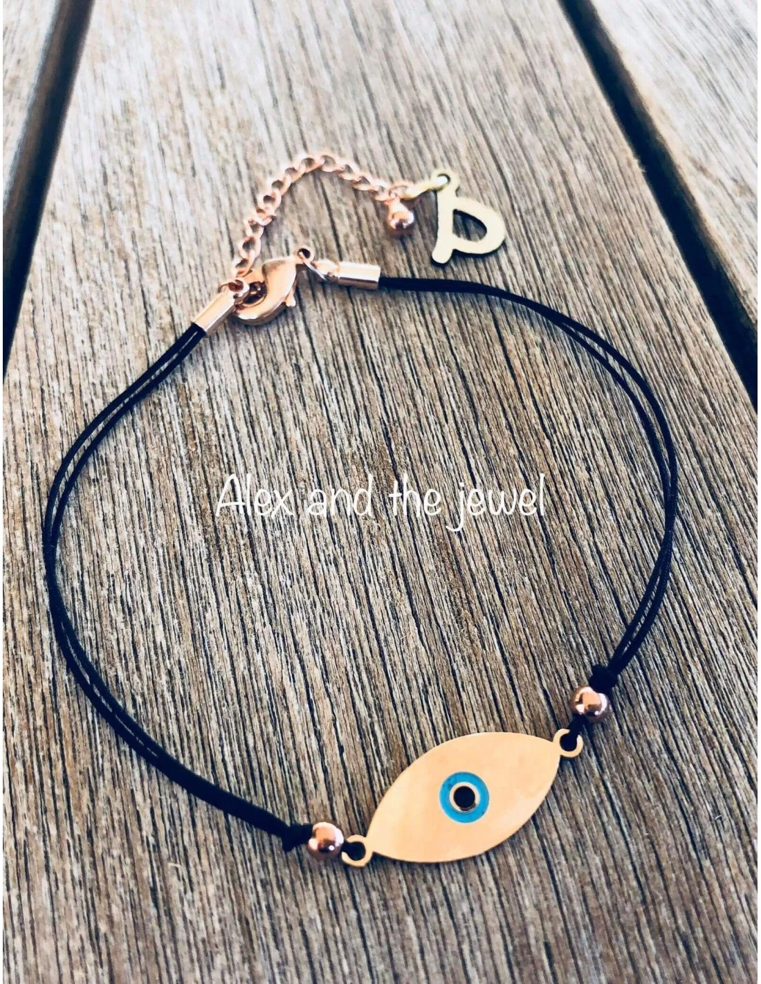 Βραχιόλι Μάτι από Ατσάλι σε Ροζ Χρυσό με Μαύρο Κορδόνι και Αλυσίδα Αυξομείωσης