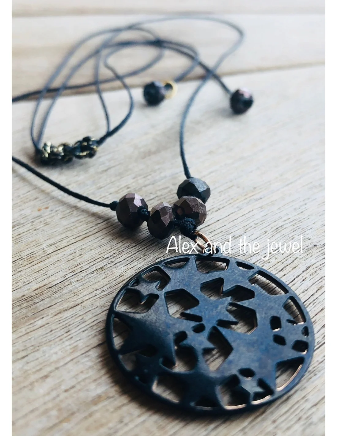 Το κολιέ είναι δεμένο σε μαύρο κερωμένο νήμα, το οποίο προσφέρει αντοχή και στιλ.