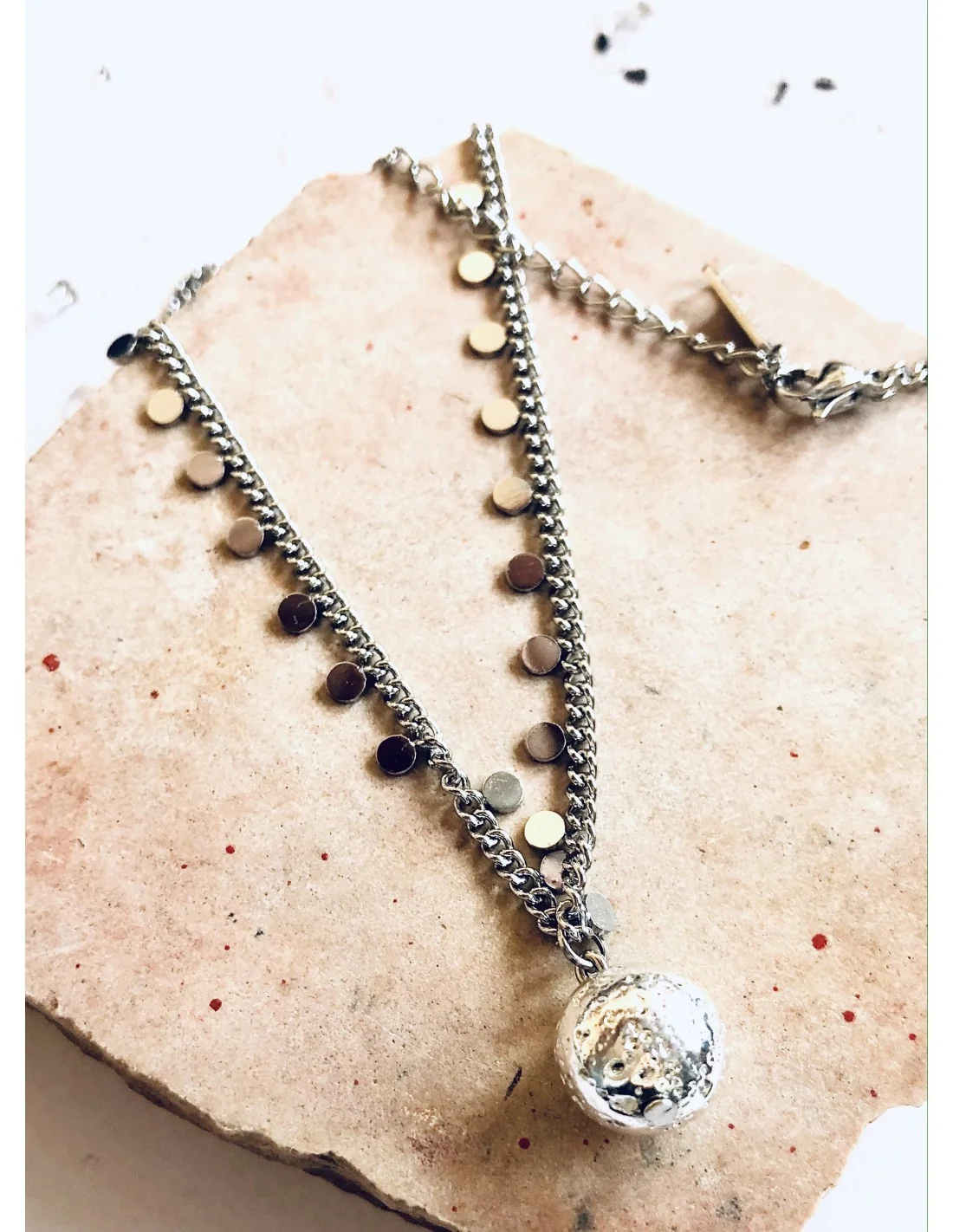 Χειροποίητο γυναικείο κολιέ από ατσάλι με επεξεργασμένη πέτρα λάβας και περίτεχνη αλυσίδα "Thenia"