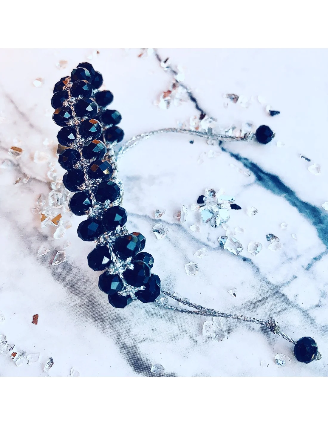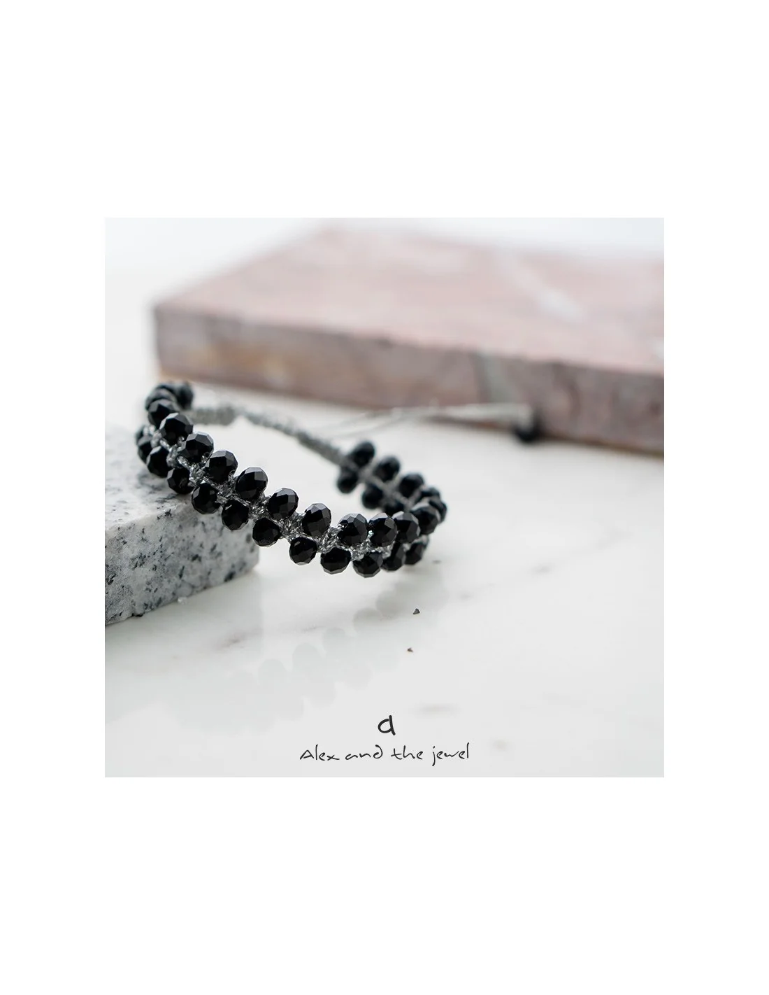 Χειροποίητο βραχιόλι πλεγμένο στο χέρι με ασημί κηροκλωστή και κομψά μαύρα κρύσταλλα που χαρίζουν μοναδική λάμψη.
