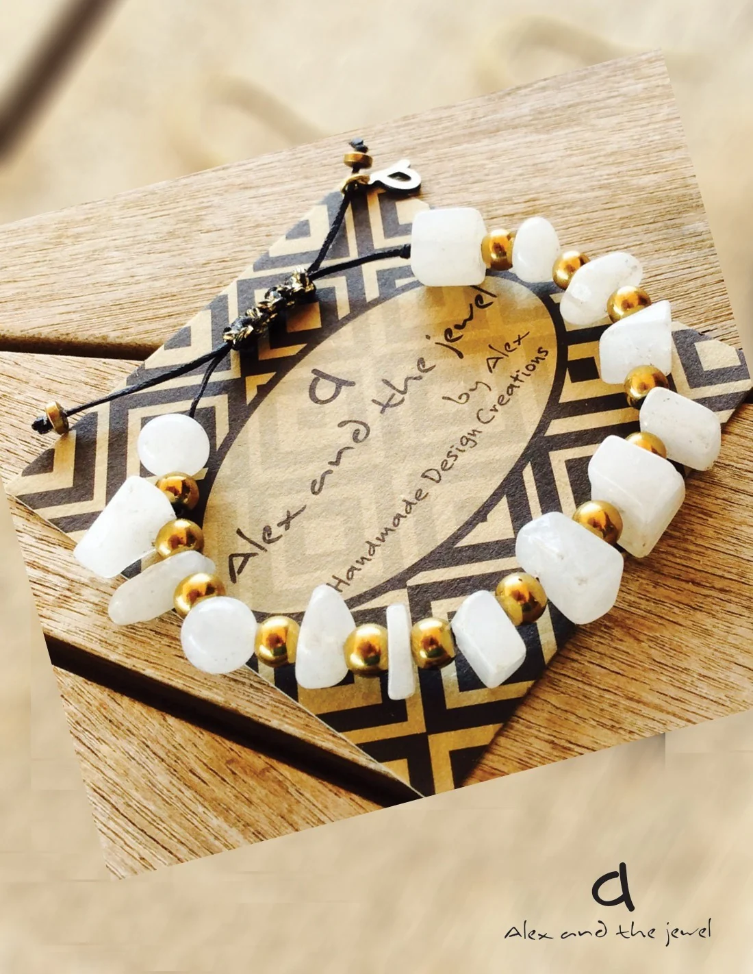 Βραχιόλι με λευκές ασύμμετρες ημιπολύτιμες πέτρες και δέσιμο με αυξομείωση.