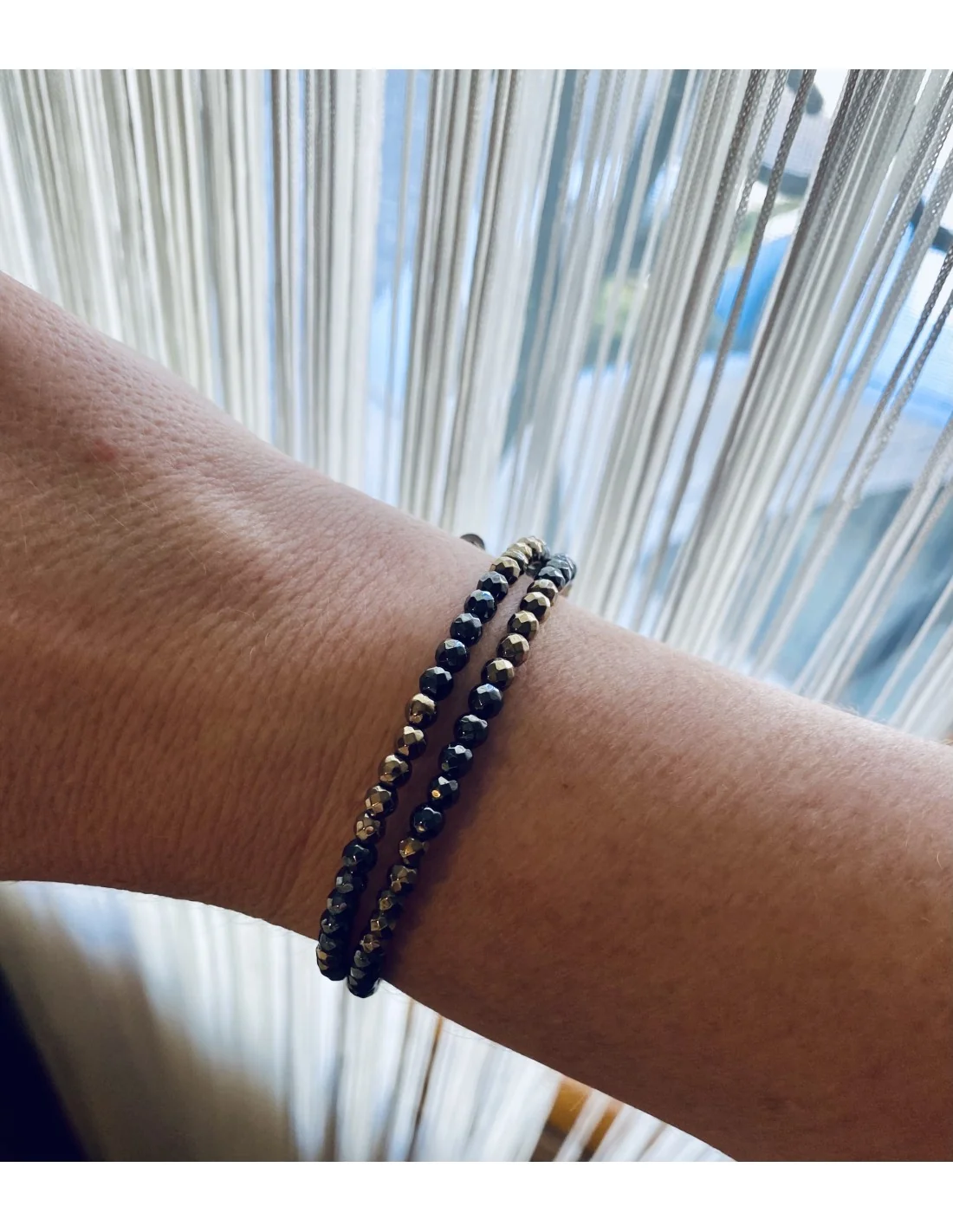 Χειροποίητο δίσειρο βραχιόλι με ημιπολύτιμες πέτρες Αιματίτη Ioli