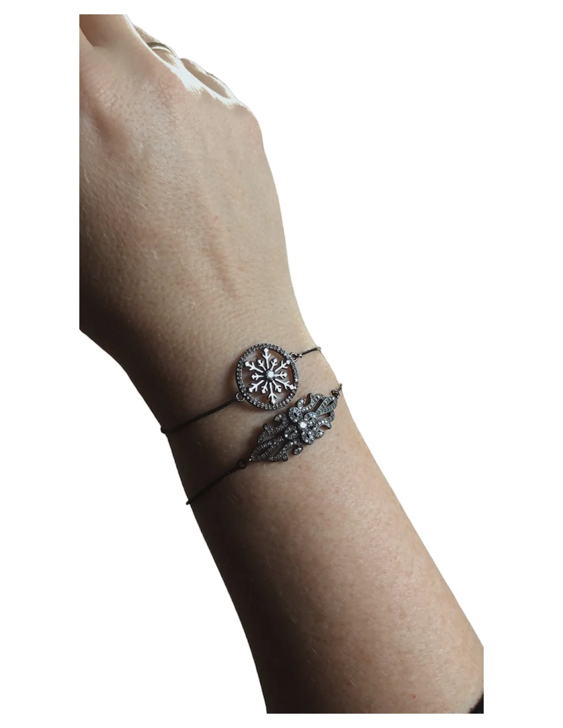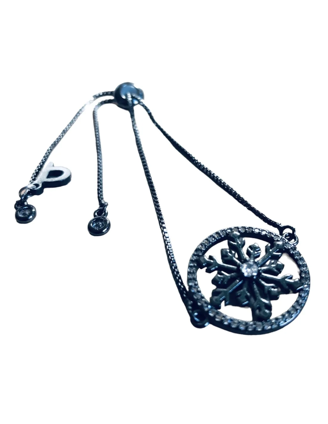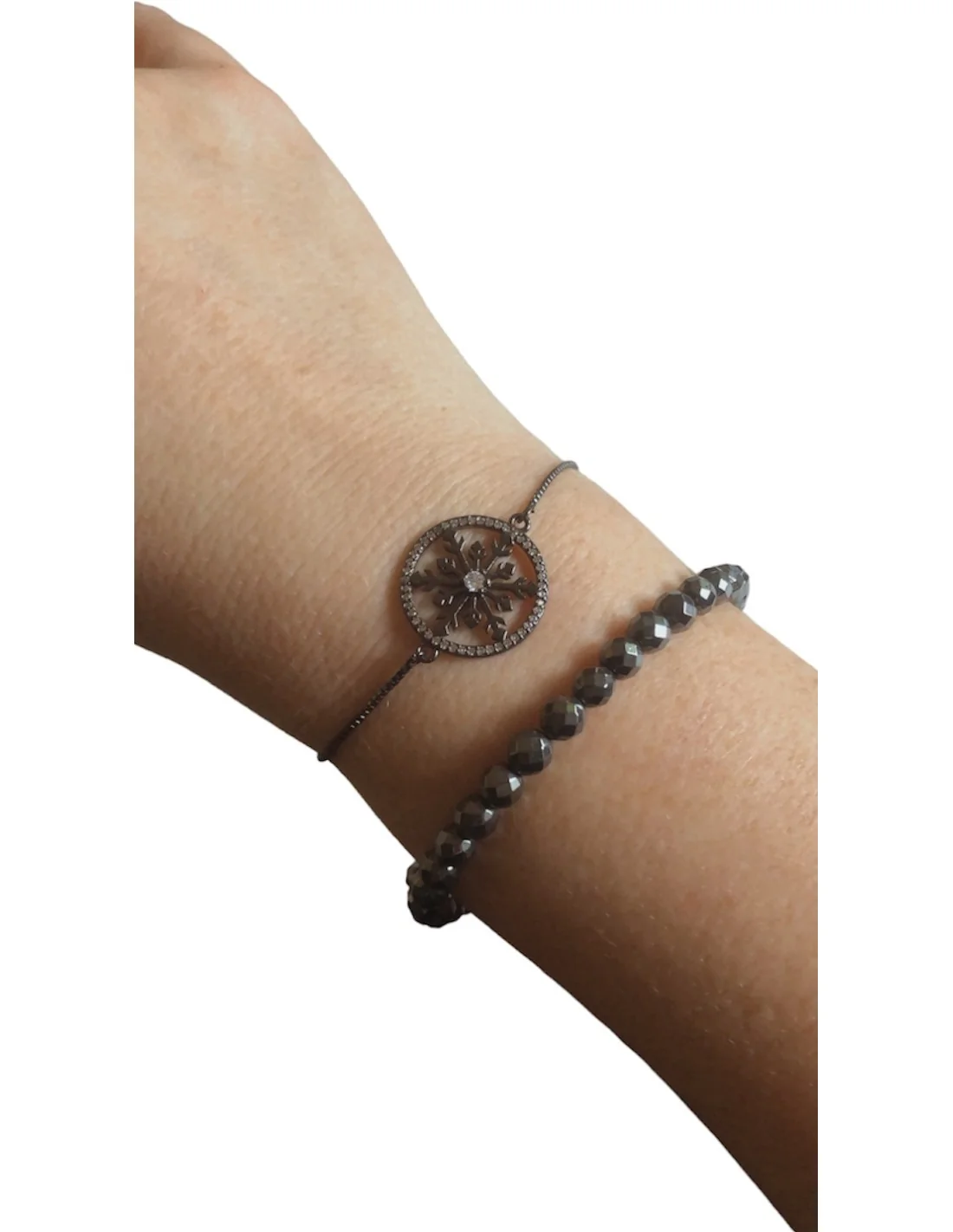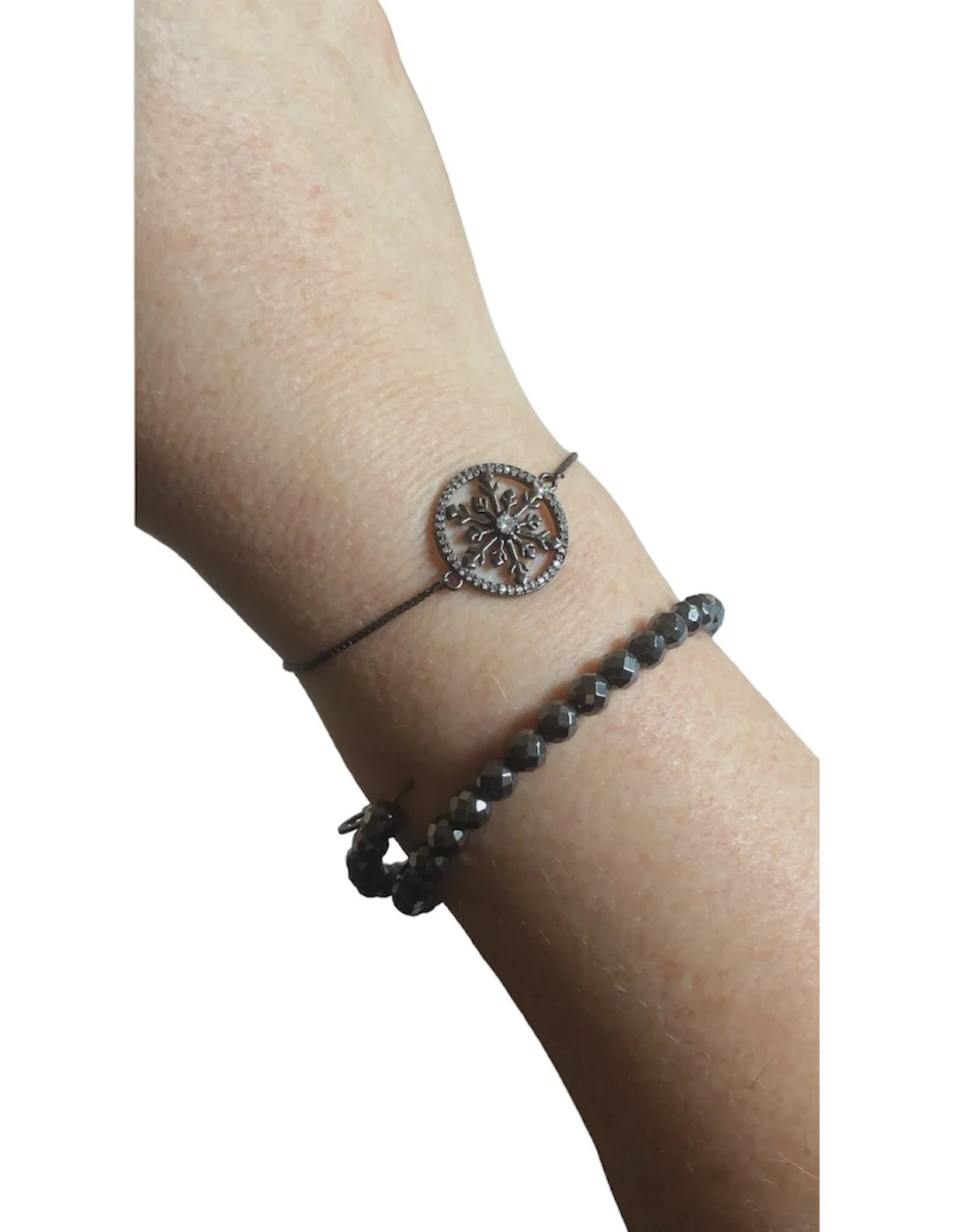 Χειροποίητο βραχιόλι με στοιχείο χιονονιφάδα σε gun metal Χιονονιφάδα