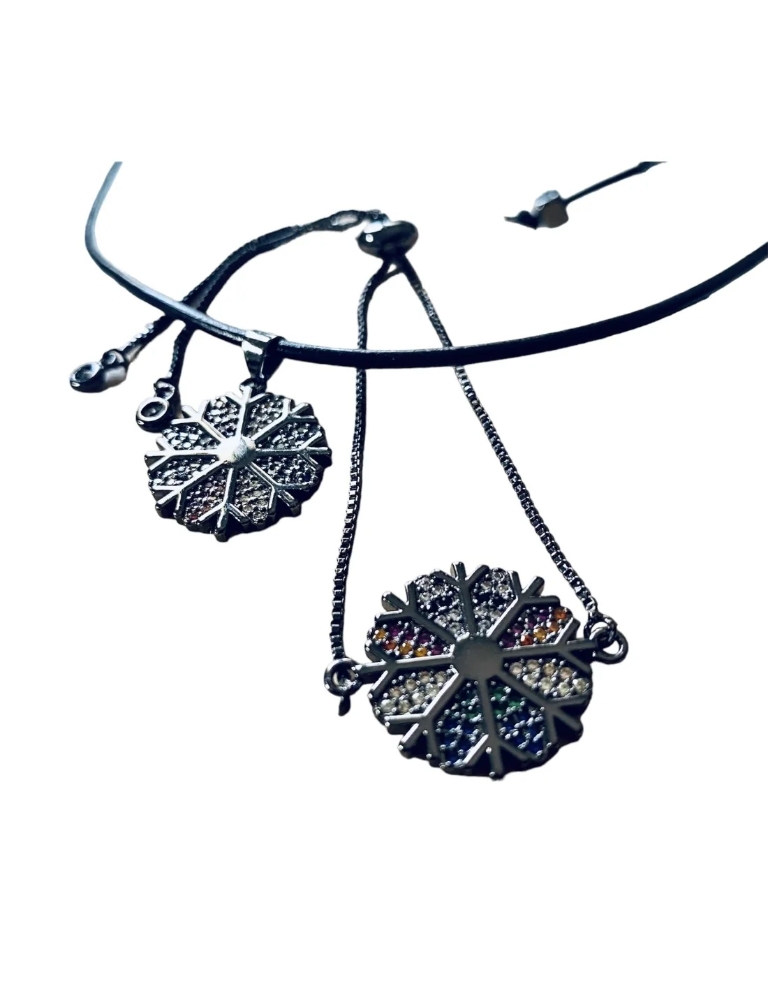 Αστικό chic look: Συνδυάστε το με μαύρο ζιβάγκο, δερμάτινο μπουφάν και αρβυλάκια για μια πιο μοντέρνα και δυναμική εμφάνιση που θα τονίσει την αντιπαράθεση της σκούρας αλυσίδας με το πολύχρωμο στοιχείο της χιονονιφάδας.