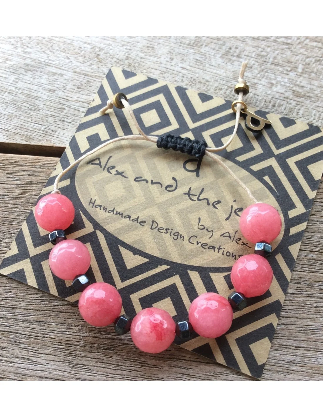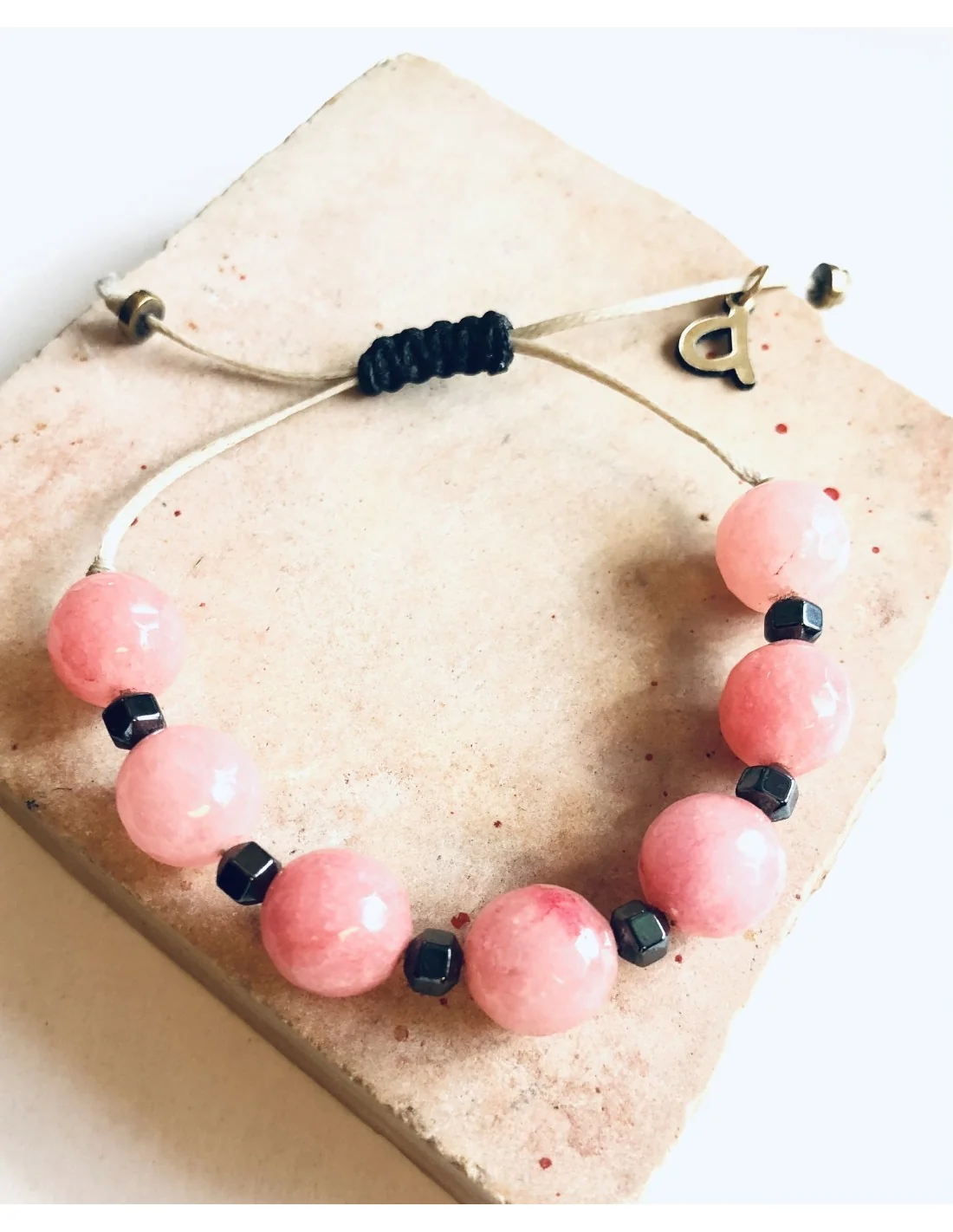 Χειροποίητο βραχιόλι Korin με Ροζ Αχάτη και Αιματίτη