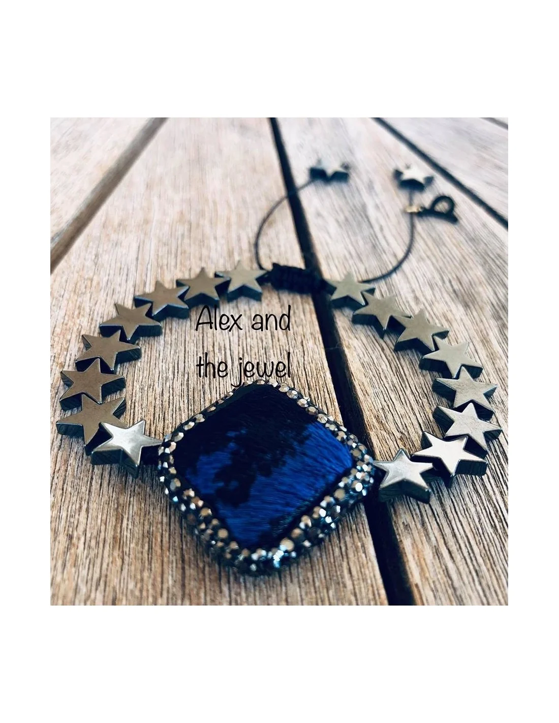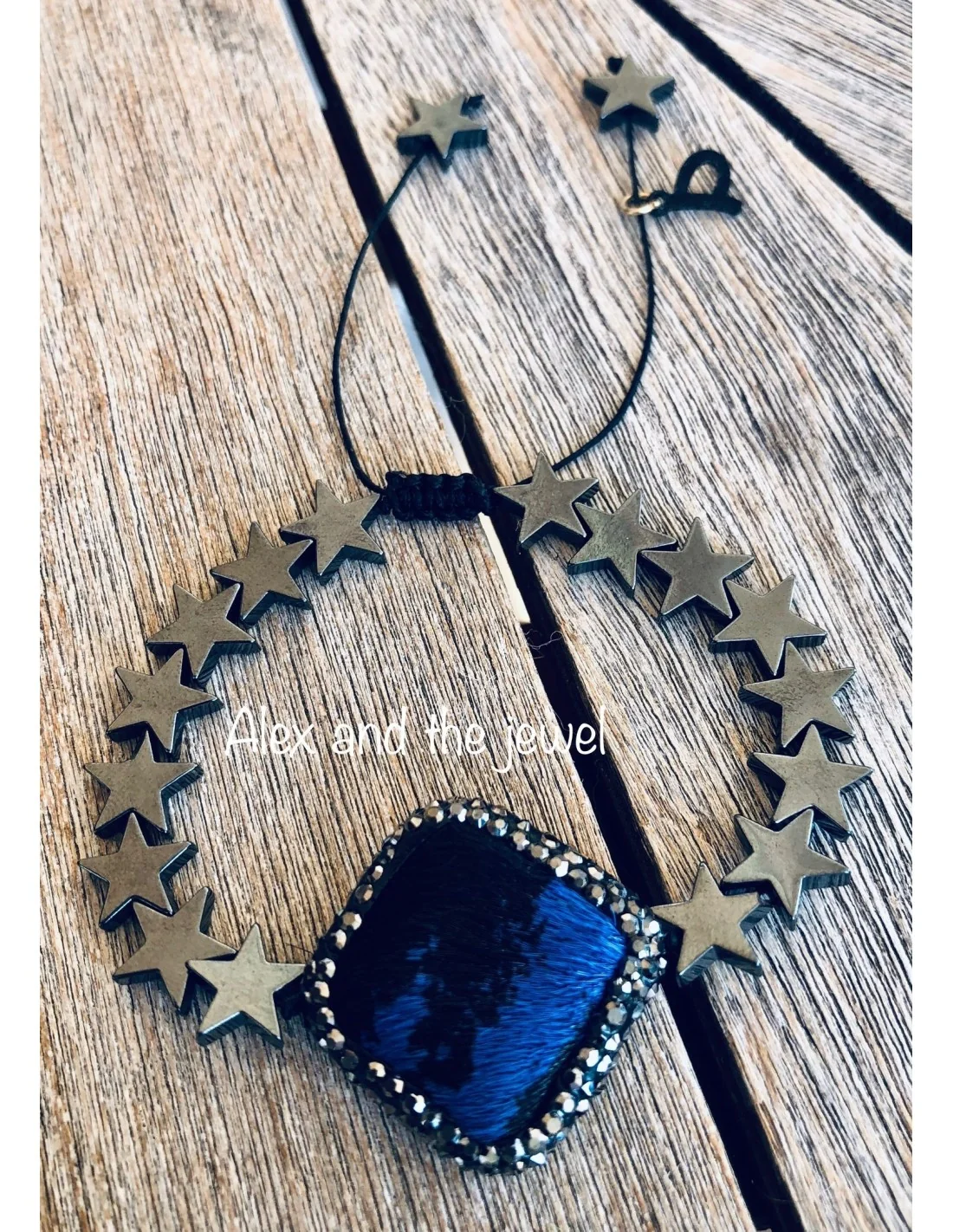 - Υλικά: Ρόμβος από pony skin, πέτρες μαρκασίτη, αιματίτης σε σχήμα αστέρι.