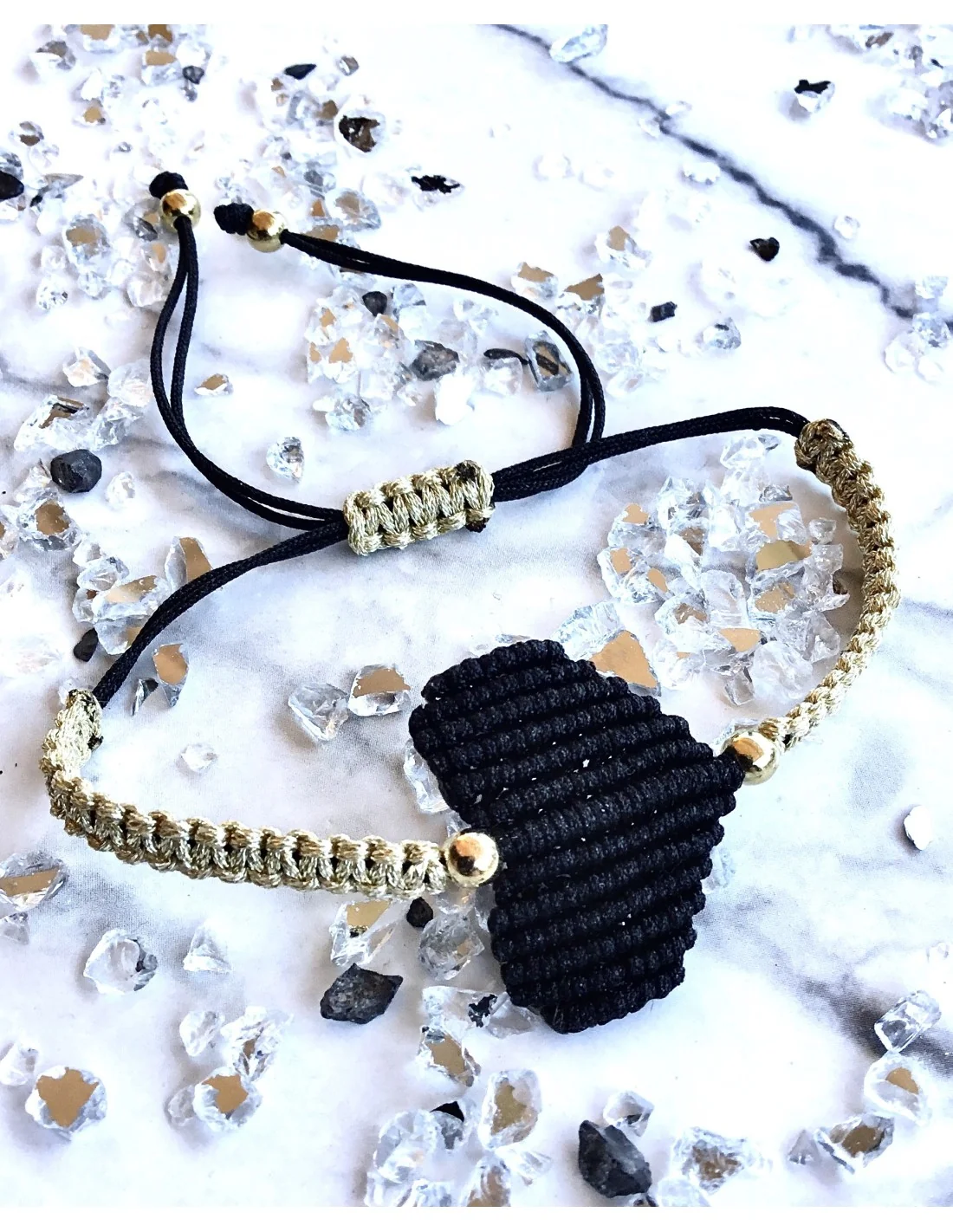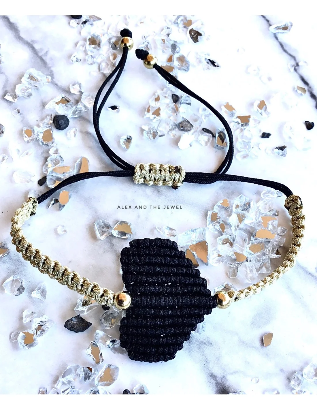 Ανακαλύψτε το χειροποίητο γυναικείο βραχιόλι Love, μια μοναδική και ρομαντική δημιουργία. Το σχέδιο καρδιάς, σε μαύρο και χρυσό, προσφέρει μια αίσθηση κομψότητας και ζεστασιάς. Αυτό το βραχιόλι είναι ιδανικό για να εκφράσετε την αγάπη σας είτε για τον εαυτό σας είτε για κάποιον άλλον.