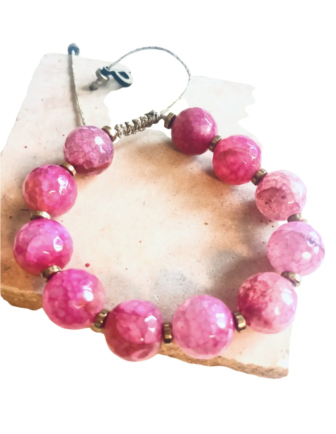 Χειροποίητο βραχιόλι με ημιπολύτιμες πέτρες Αχάτη σε ροζ αποχρώσεις με νερά και πέτρες αιματίτη σε χρυσό χρώμα Rosalia