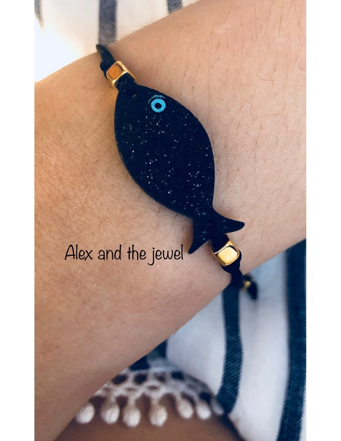 Το χειροποίητο βραχιόλι με ψαράκι εντυπωσιάζει με τις μοναδικές αποχρώσεις του ακρυλικού γκλίτερ και τη χαρούμενη διάθεση που αποπνέει.