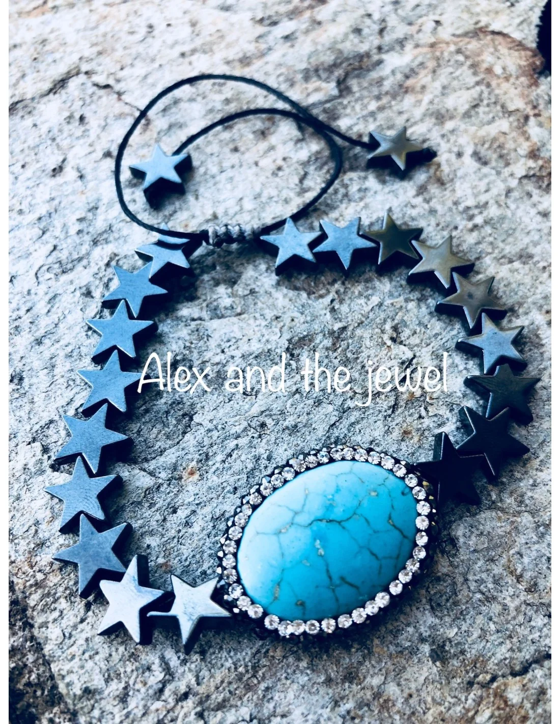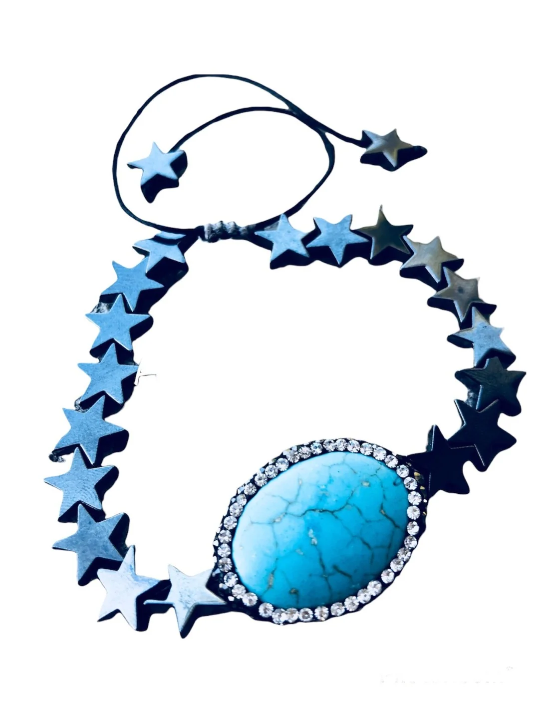Δεν υπάρχουν άλλα προϊόντα στο καλάθι σαςΧειροποίητο βραχιόλι με ημιπολύτιμες πέτρες Αχάτη σε γαλάζιο, πέτρες Μαρκασίτη και αυξομείωση Starlight