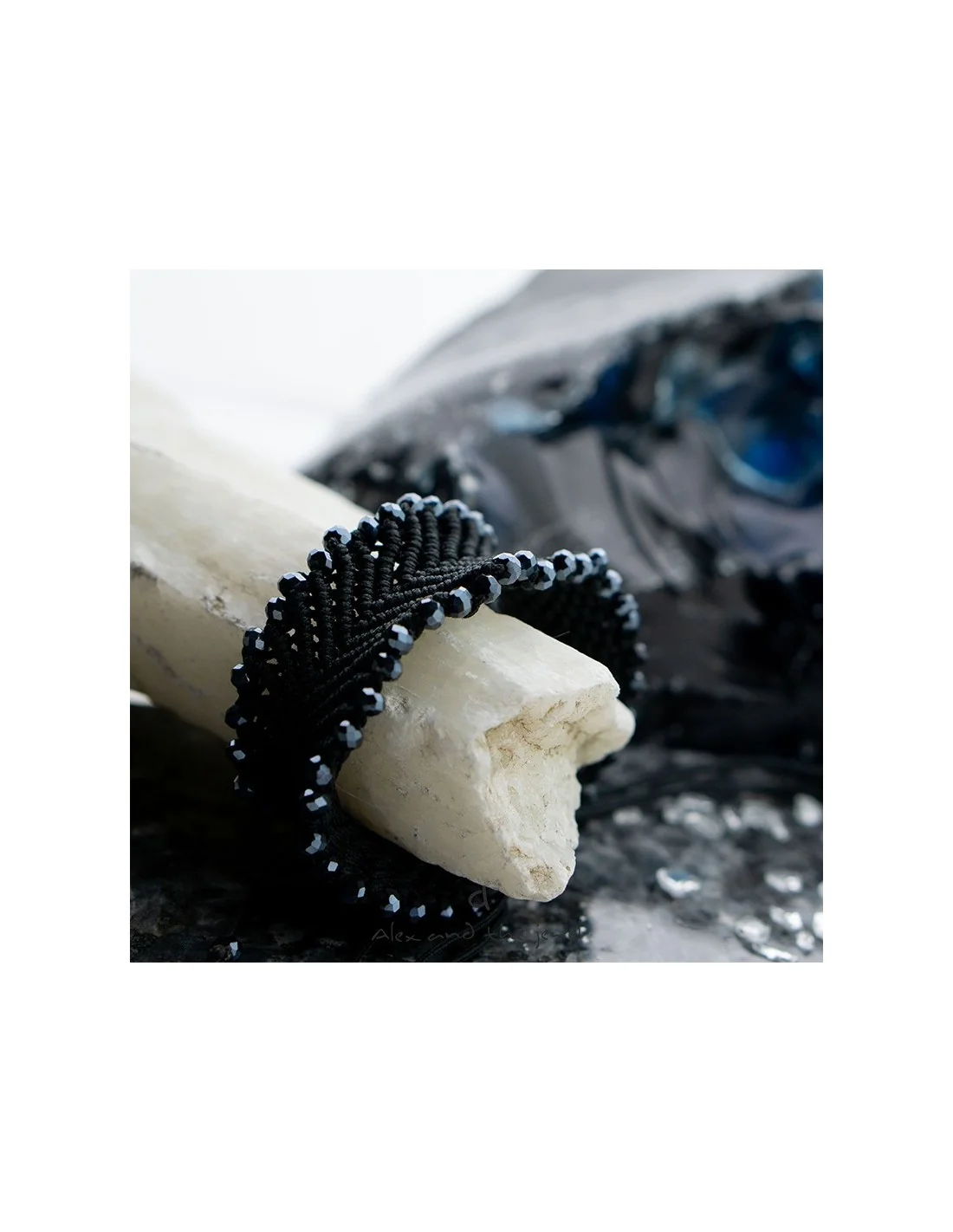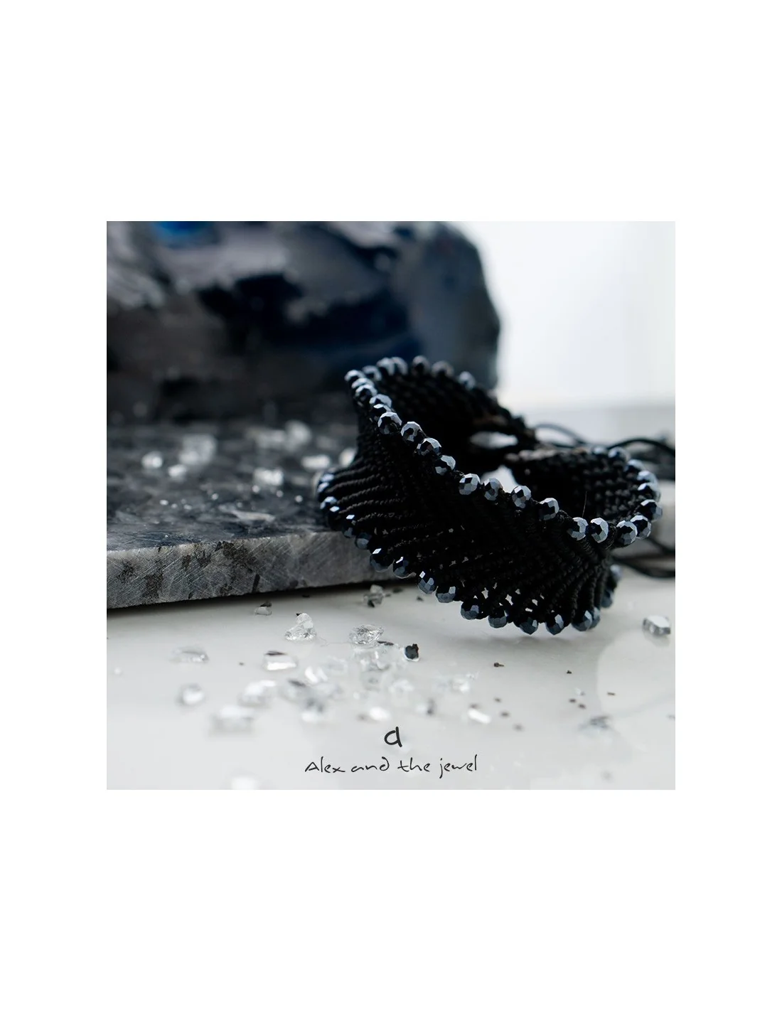 Χειροποίητο βραχιόλι πλεγμένο στο χέρι με μαύρο κερωμένο κορδόνι και τεχνική πλέξης μακραμέ που του προσδίδει κομψότητα και αντοχή.