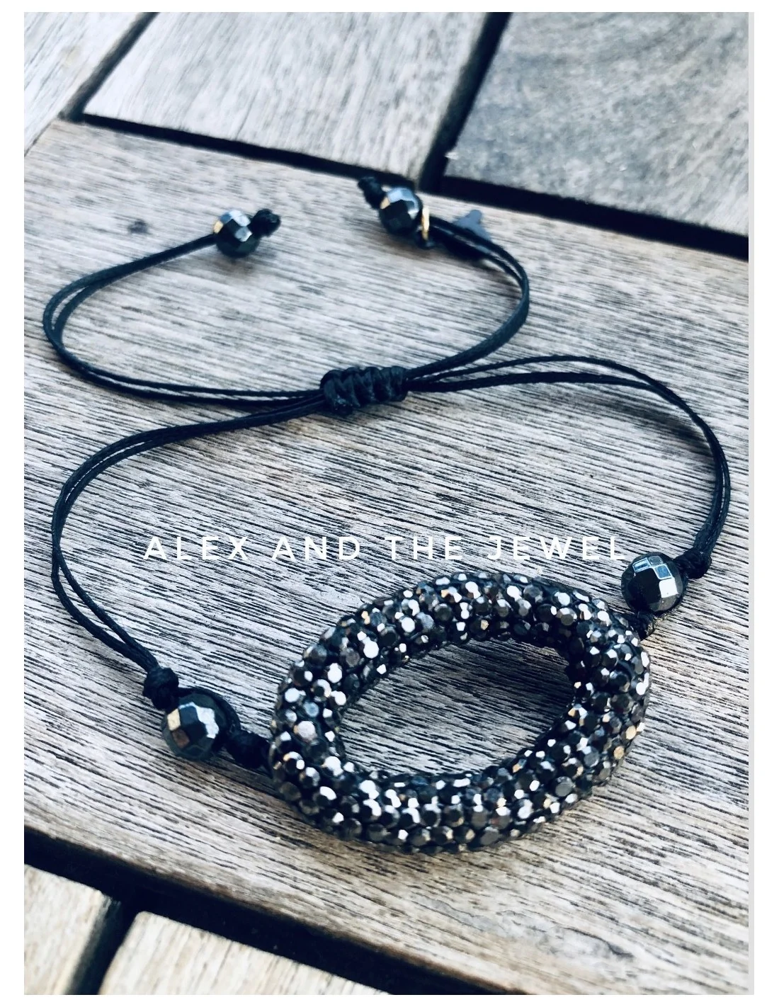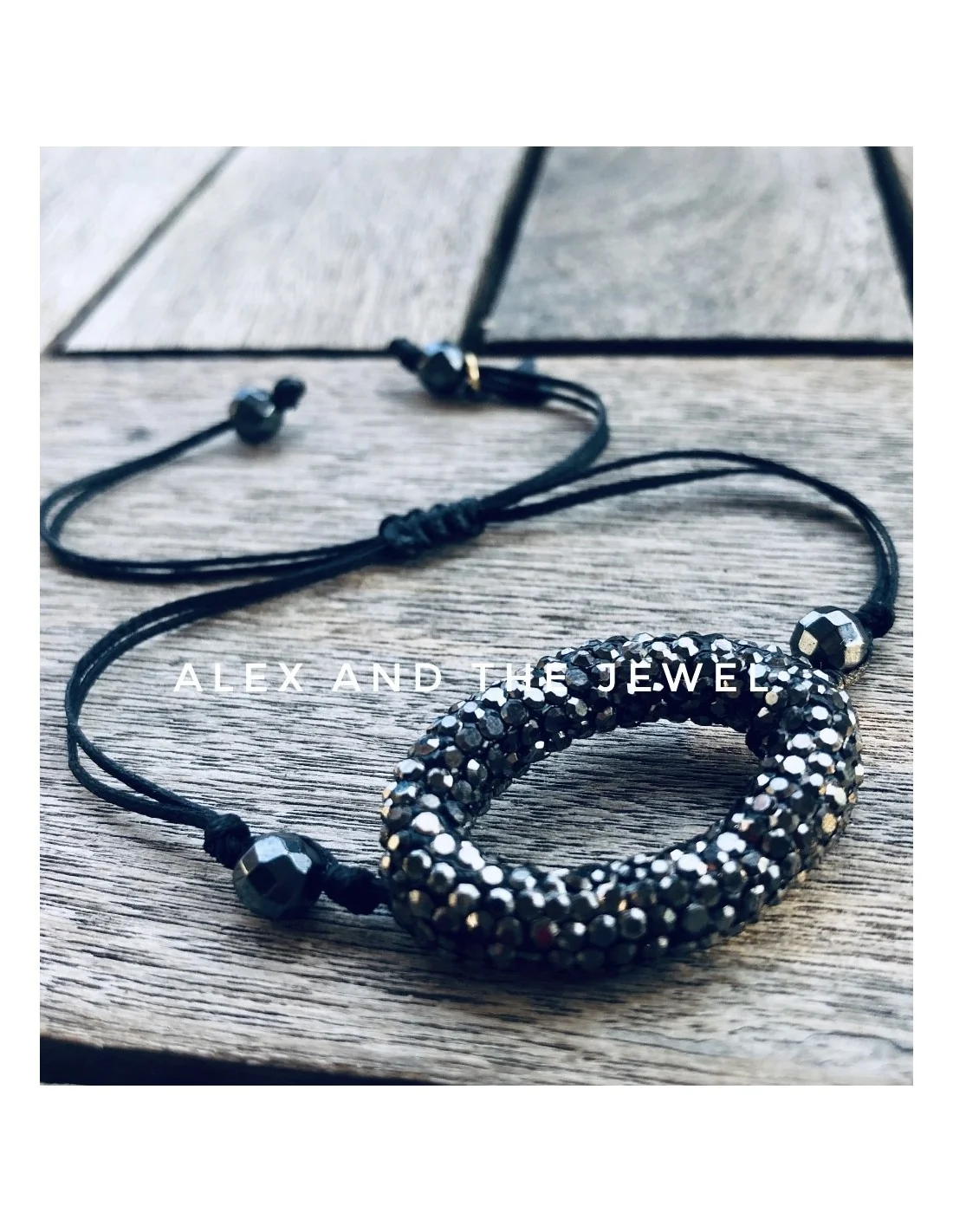 Χειροποίητο βραχιόλι με οβάλ διάτρητο κεντρικό στοιχείο στολισμένο με πέτρες μαρκασίτη που προσθέτουν έναν αέρα κομψότητας και μοναδικότητας. Είναι δεμένο σε μαύρο κερωμένο νήμα με αυξομείωση για τέλεια εφαρμογή, και πλαισιώνεται από διακοσμητικές ημιπολύτιμες πέτρες αιματίτη που προσφέρουν μοντέρνα λάμψη και στυλ. Ιδανικό για καθημερινές εμφανίσεις με elegant χαρακτήρα.