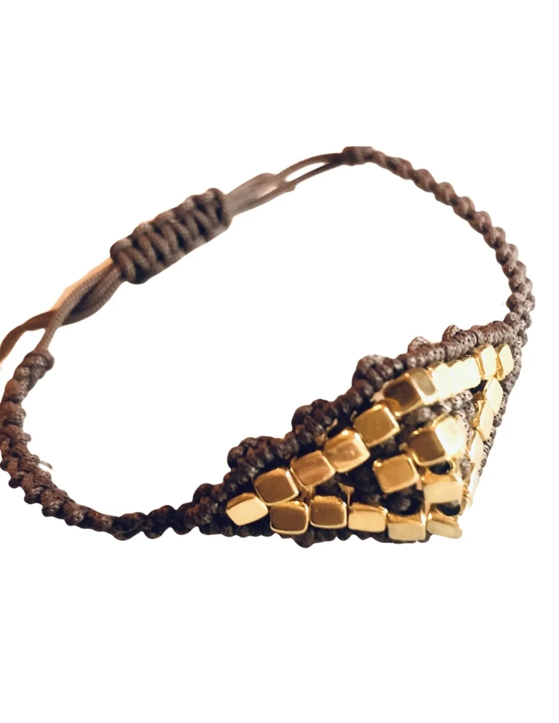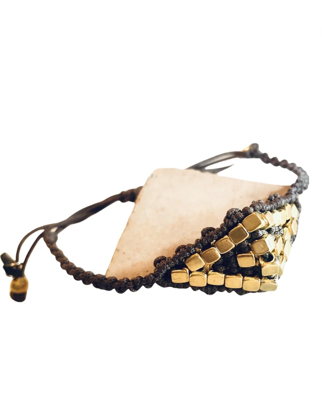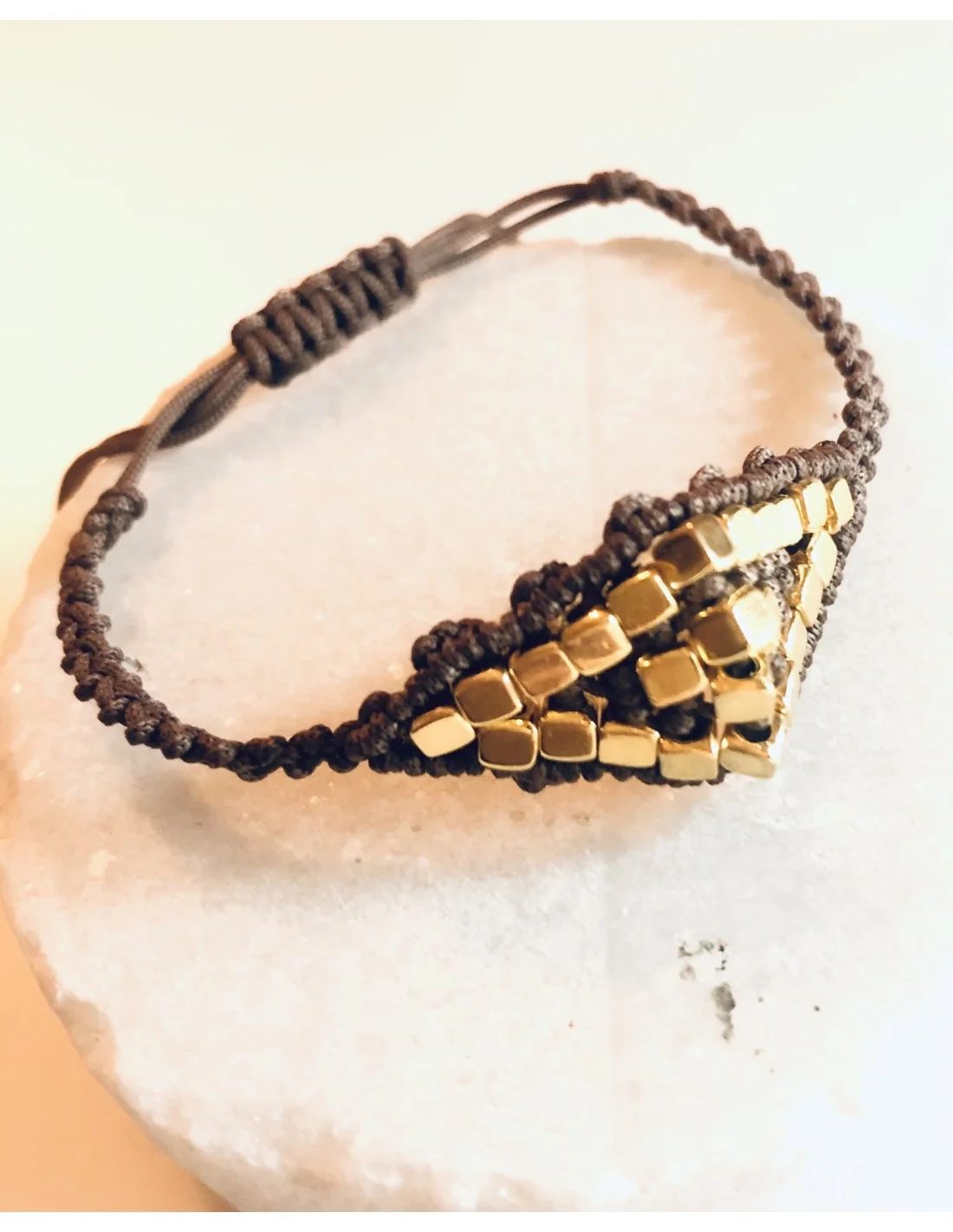 Χειροποίητο γυναικείο βραχιόλι μάτι μακραμέ χρυσό και καφέ με ημιπολύτιμες πέτρες Αιματίτη Eye contact