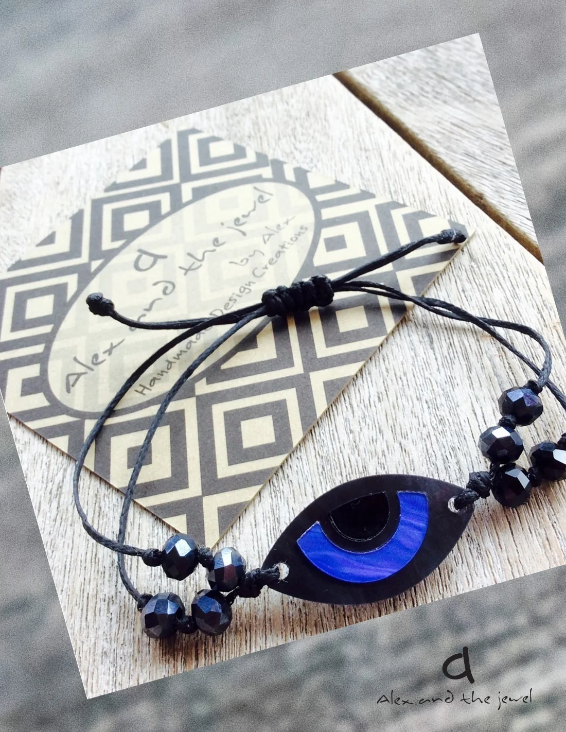 Χειροποίητο βραχιόλι Evil Eye με μπλε και μαύρες λεπτομέρειες