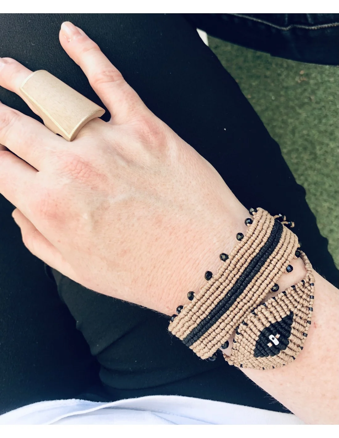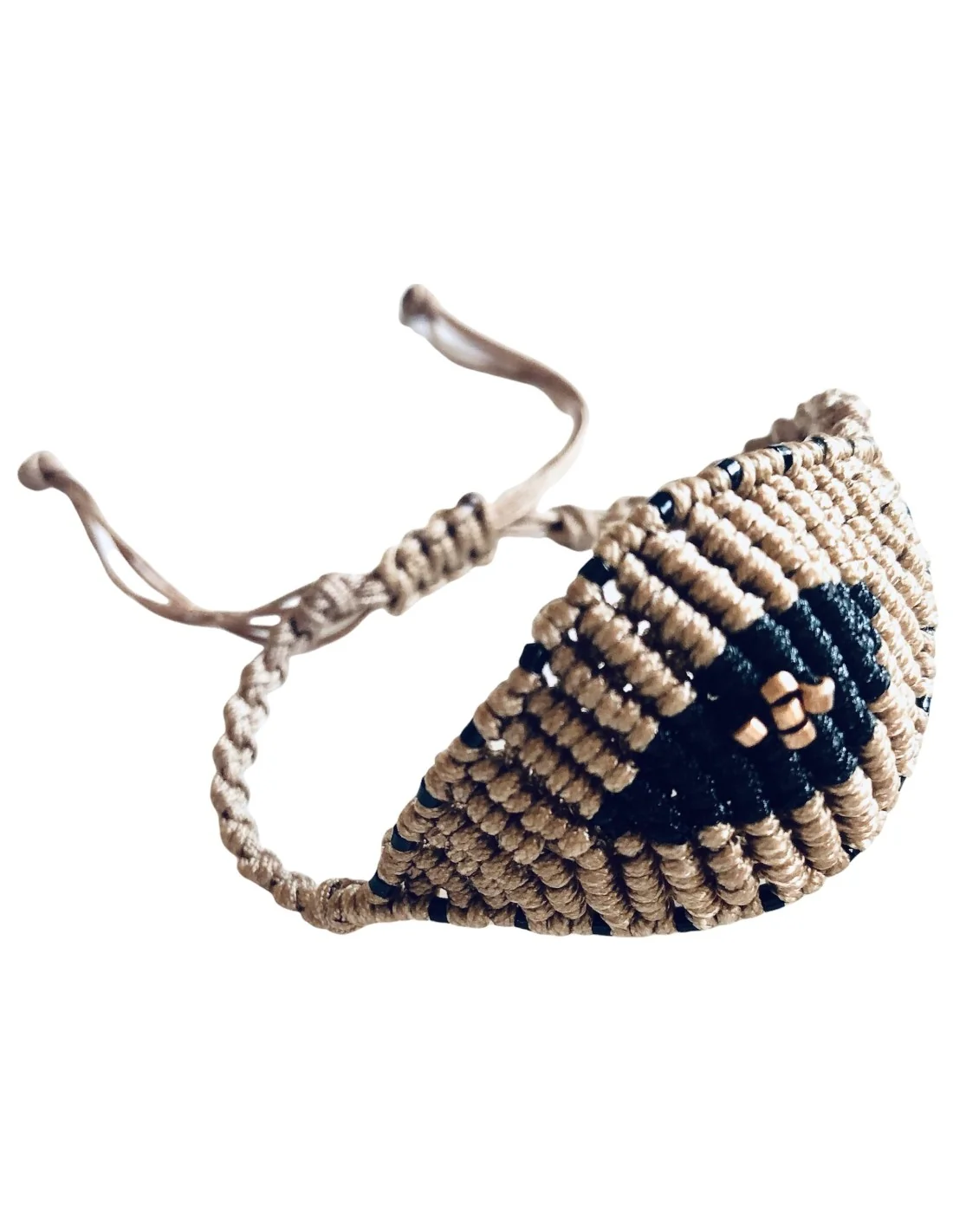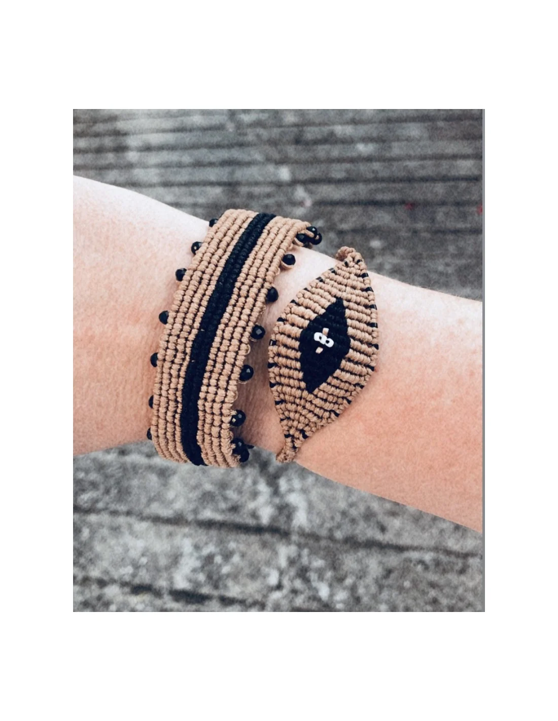 Χειροποίητο βραχιόλι μάτι σε μπεζ και μαύρο σε πλέξη μακραμέ Eyes