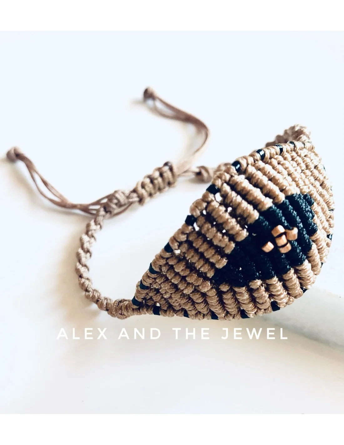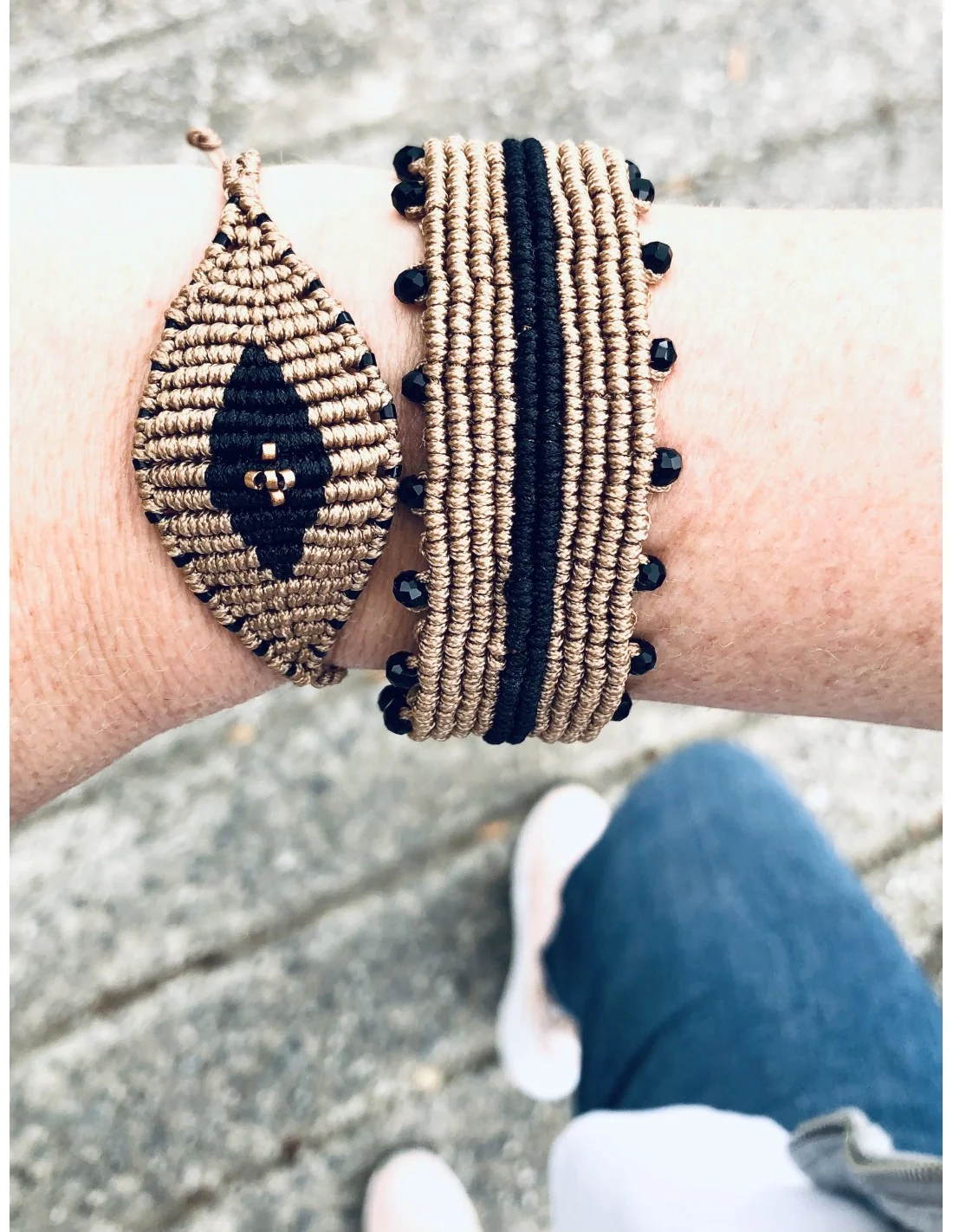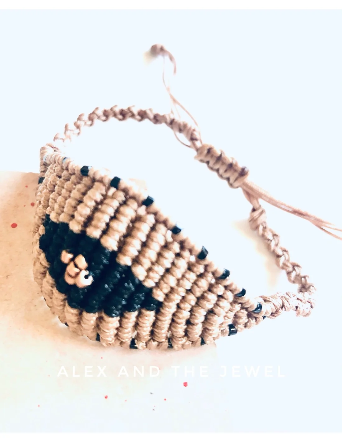 Χειροποίητο βραχιόλι μάτι σε μπεζ και μαύρο σε πλέξη μακραμέ Eyes