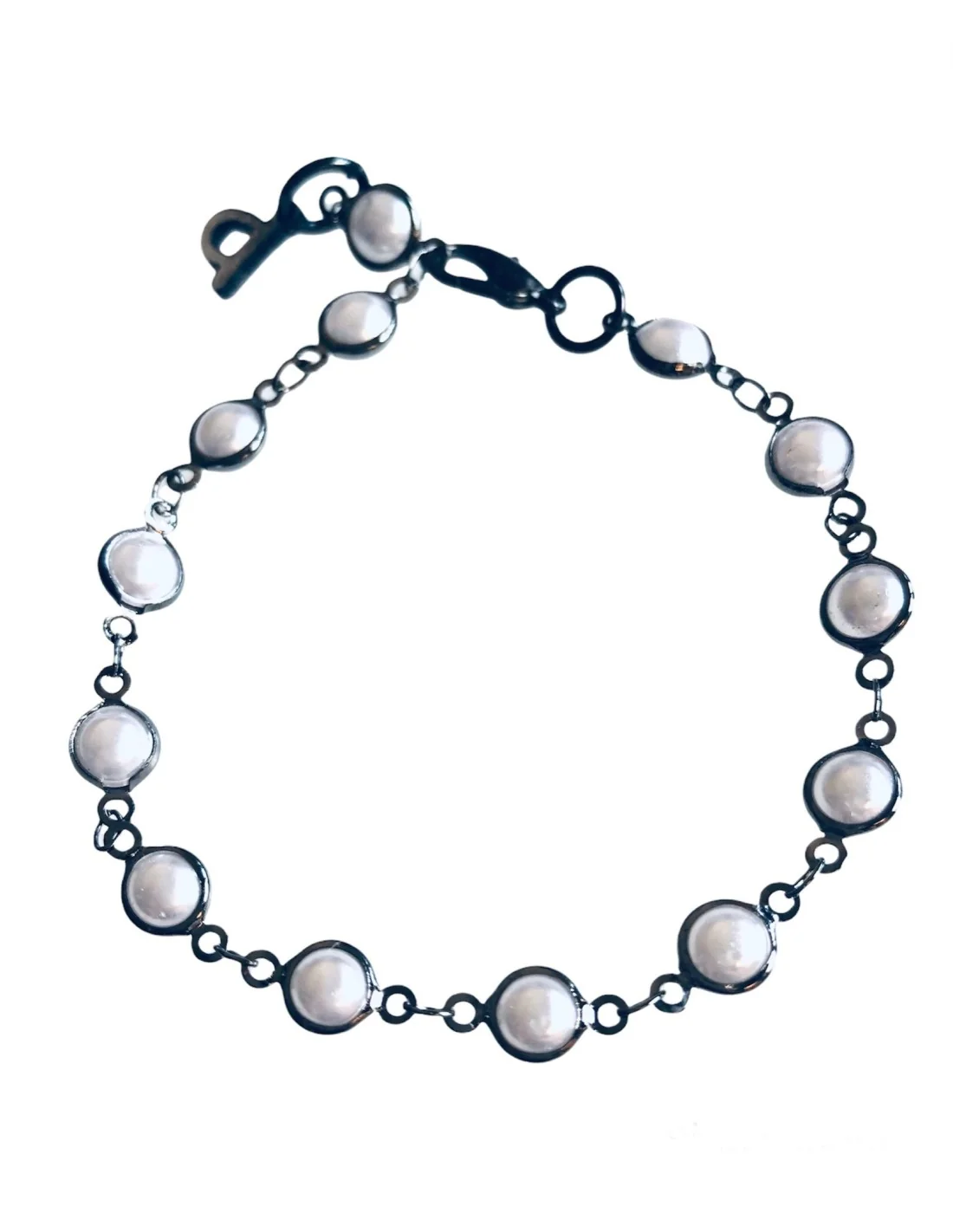 Χειροποίητο γυναικείο βραχιόλι με ατσάλινη αλυσίδα και πέρλες
