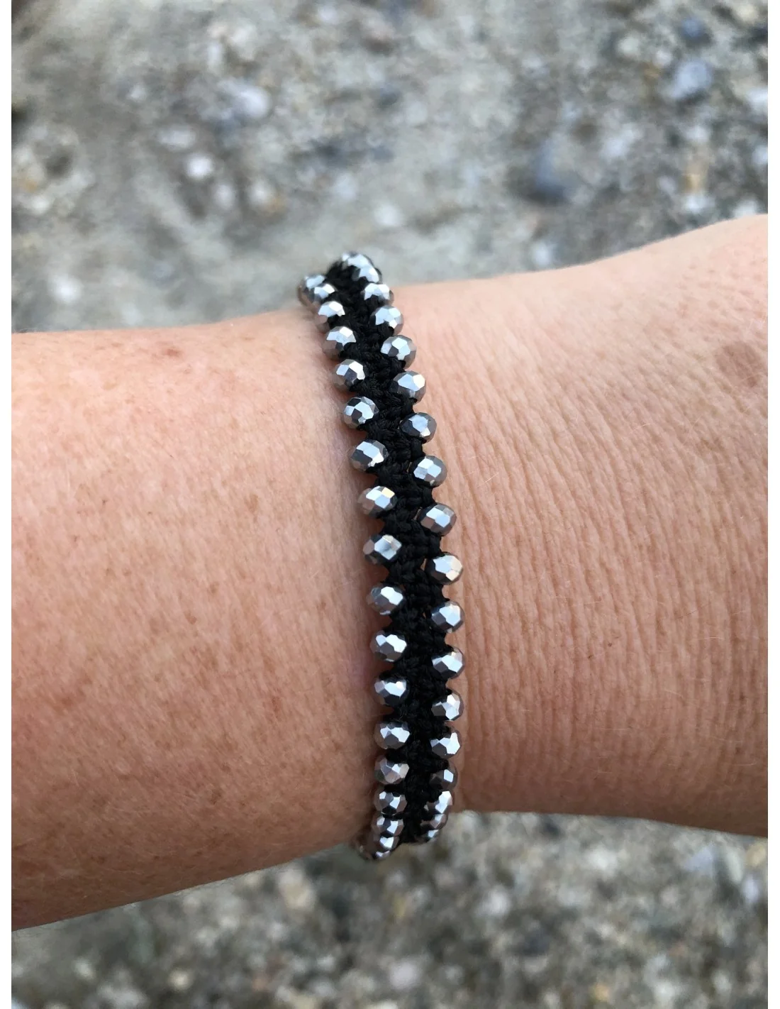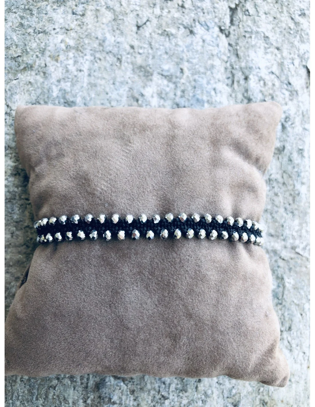 Χειροποίητο γυναικείο βραχιόλι, πλεγμένο στο χέρι με πλέξη μακραμέ σε διάφορα χρώματα και δύο σειρές τσέχικα κρύσταλλα περιμετρικά Hapiness