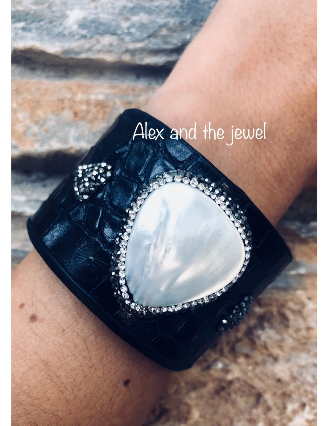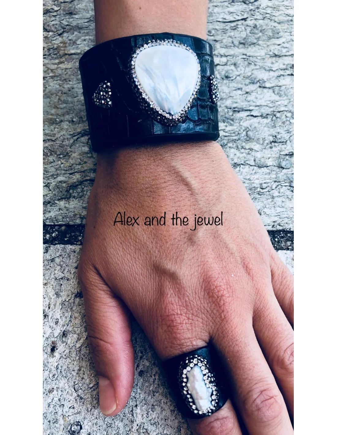Το χειροποίητο βραχιόλι "Ofis" συνδυάζει την πολυτέλεια του δέρματος φιδιού με τη διαχρονική λάμψη του Μαρκασίτη και την κομψότητα του Φίλντισι.