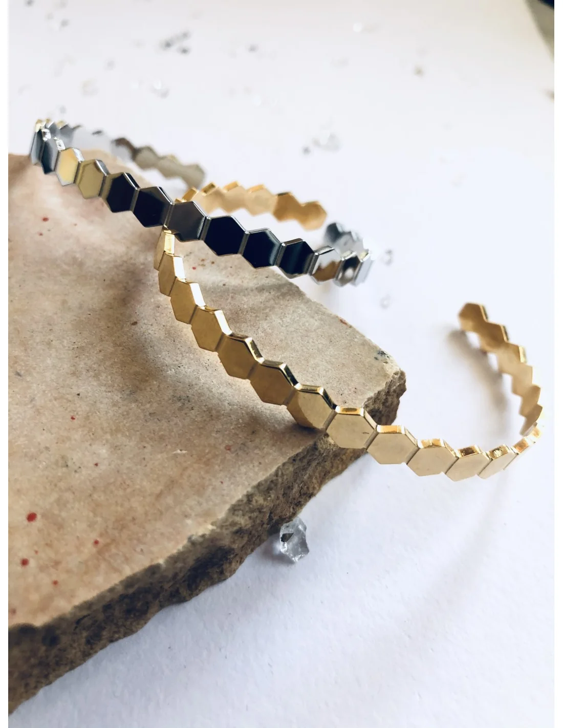 Χειροποίητο βραχιόλι ανοικτή χειροπέδα από ατσάλι σε χρυσό ή ασημί Sienna