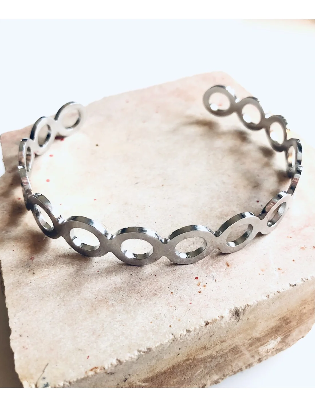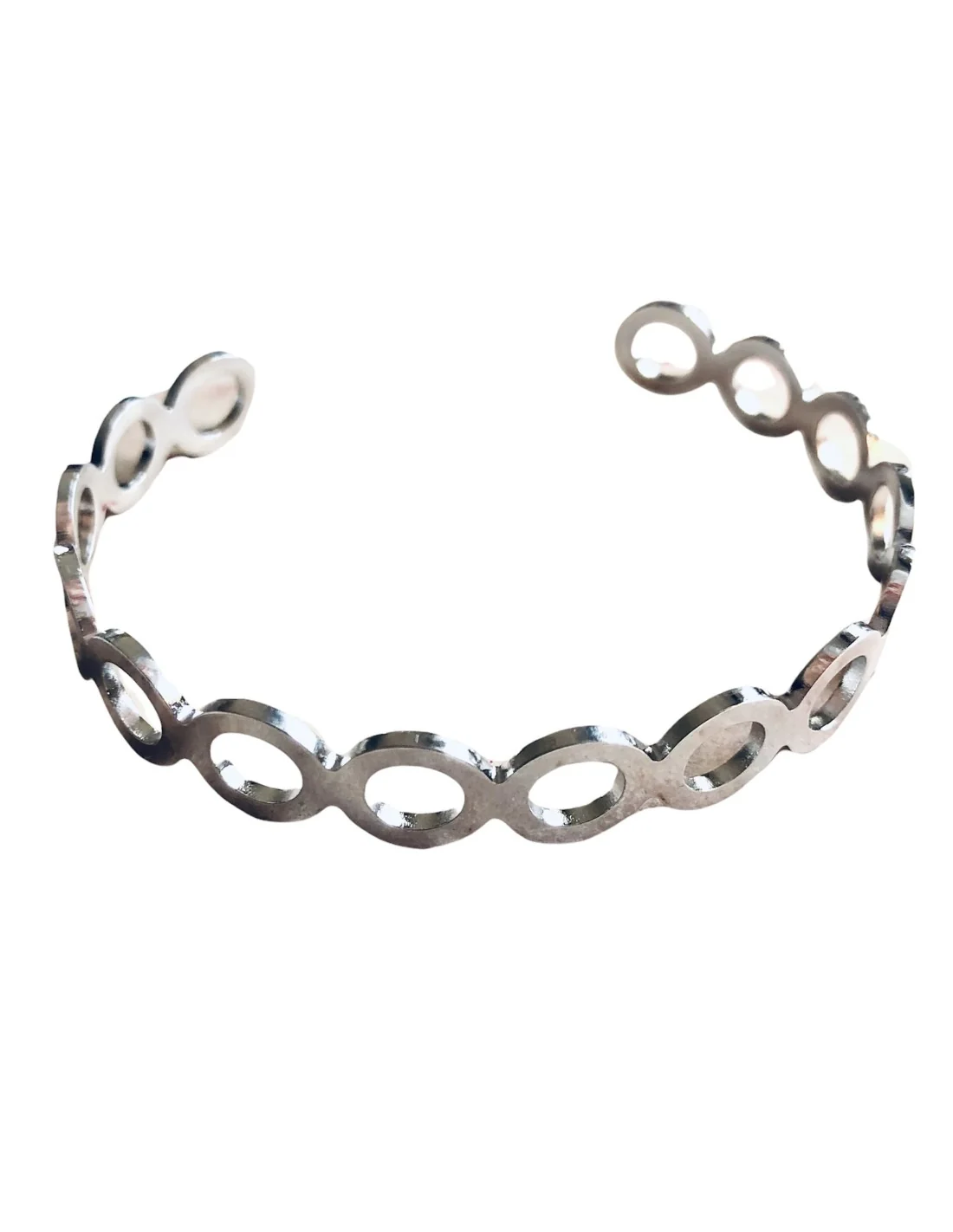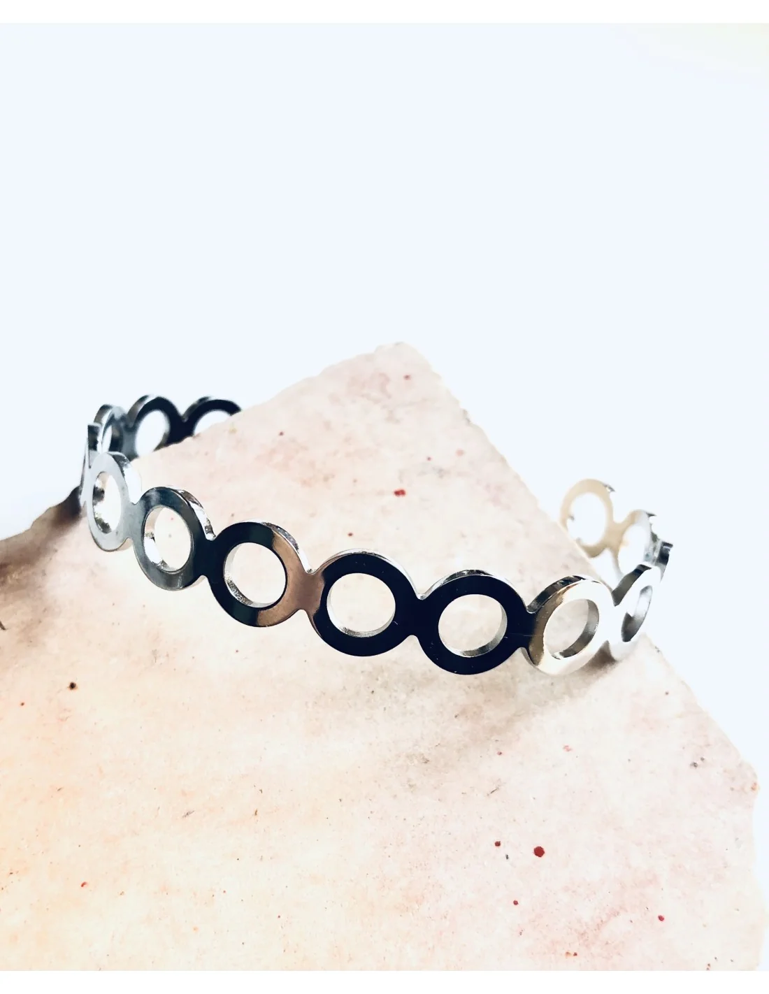 Γυναικείο βραχιόλι χειροπέδα από ανοξείδωτο ατσάλι με διάτρητους κύκλους
