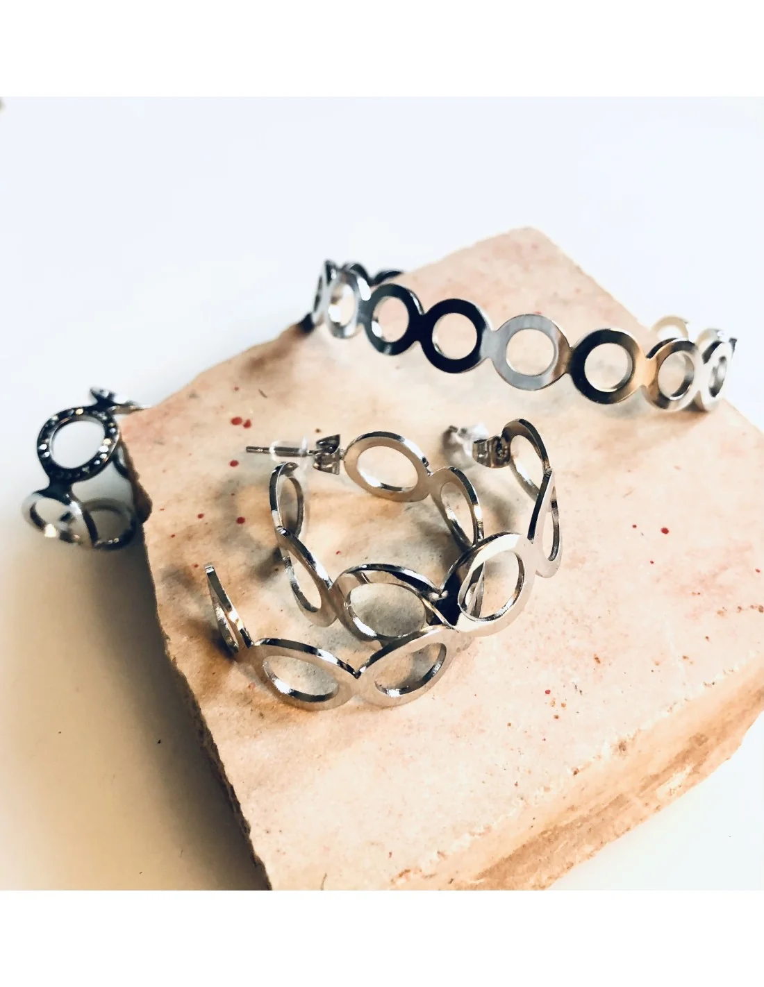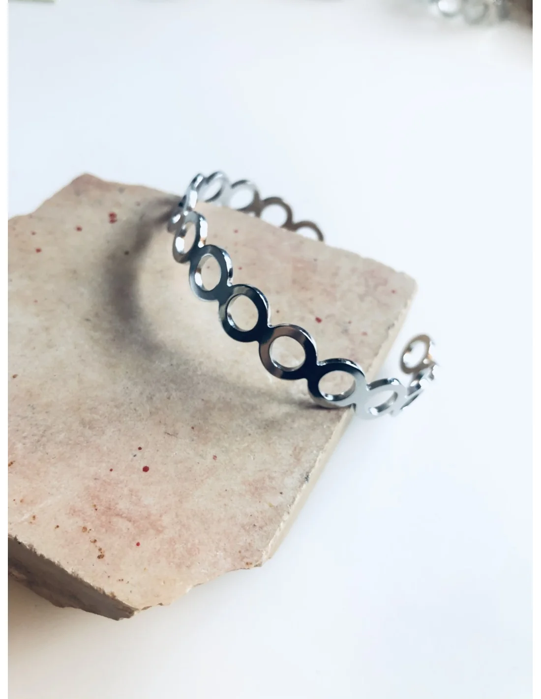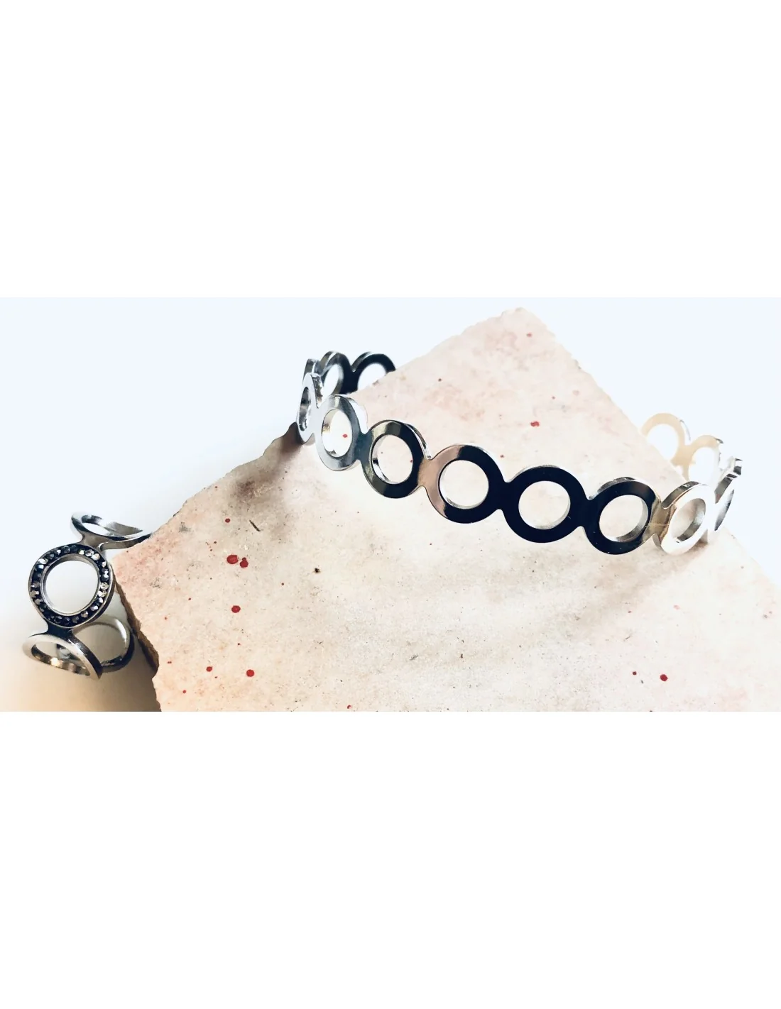 Γυναικείο βραχιόλι χειροπέδα από ανοξείδωτο ατσάλι με διάτρητους κύκλους
