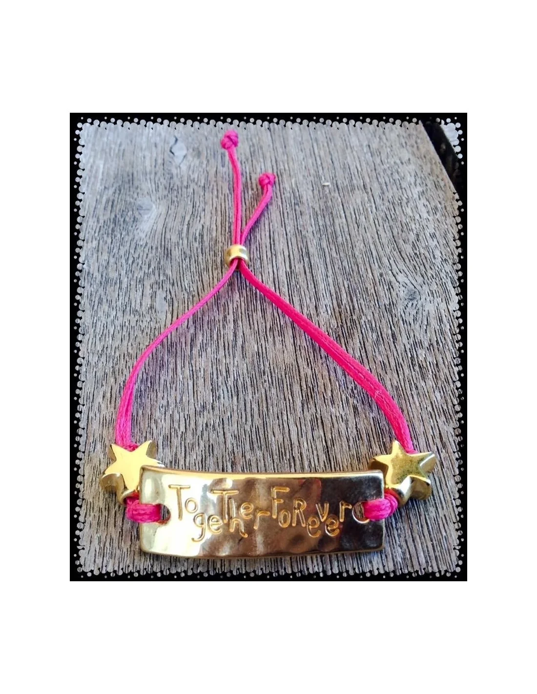 Βραχιόλι "Friends" με Χρυσή Πλακέτα σε Φούξια Κορδόνι