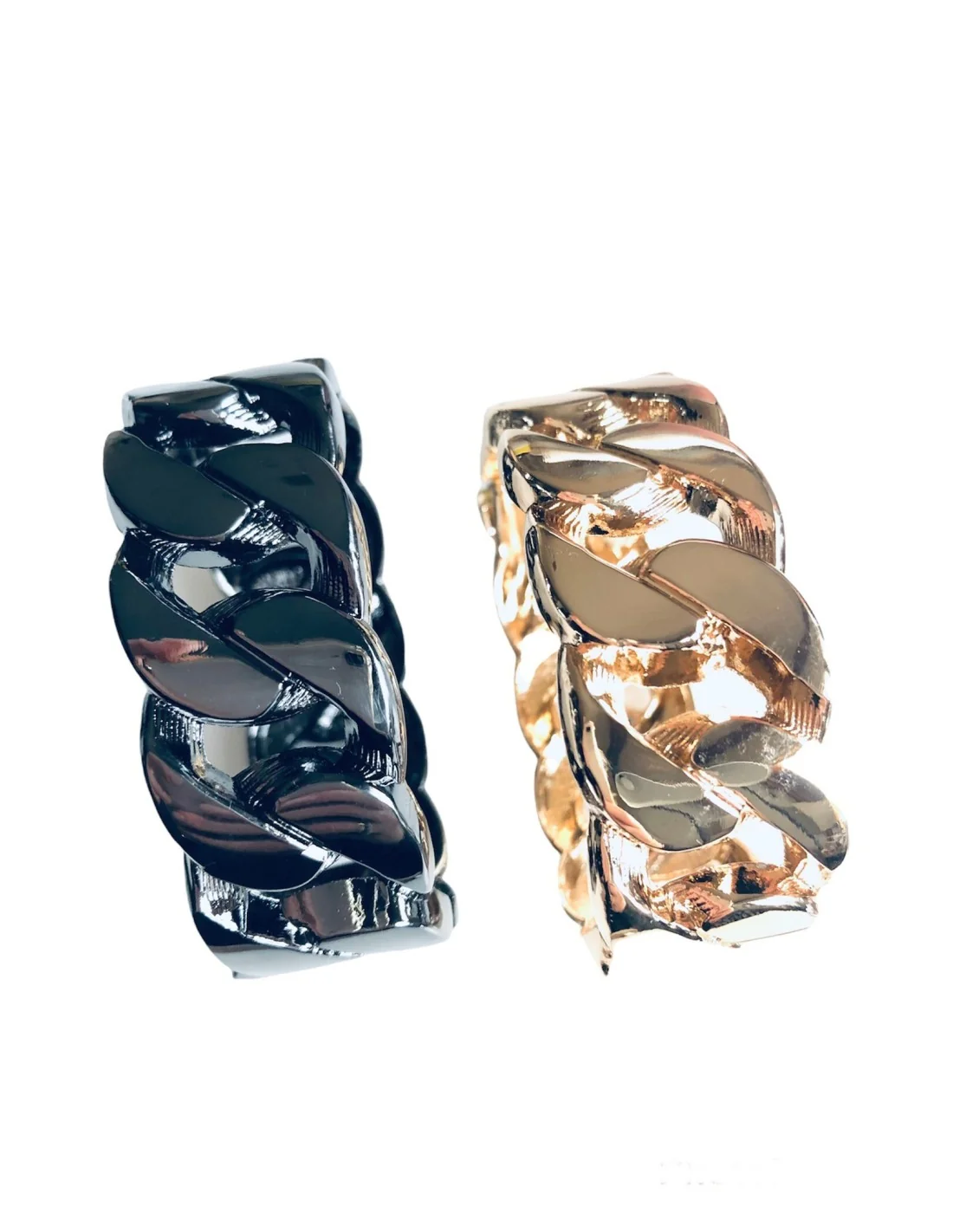 Φαρδύ βραχιόλι χειροπέδα από ατσάλι σε χρυσό και μαύρο σε σχέδιο καδένας Daria