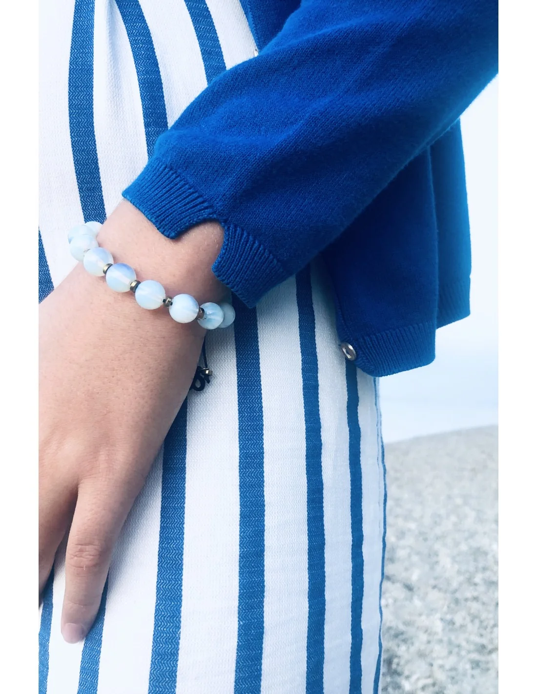 Το Moon Love είναι ένα εντυπωσιακό χειροποίητο βραχιόλι με ημιπολύτιμες πέτρες Φεγγαρόπετρας και Αιματίτη. Οι ιριδίζουσες αποχρώσεις της Φεγγαρόπετρας συνδυάζονται αρμονικά με τον ασημί Αιματίτη και το δίχρωμο κορδόνι με αυξομείωση, δημιουργώντας ένα μοναδικό κόσμημα που αποπνέει γοητεία και κομψότητα.