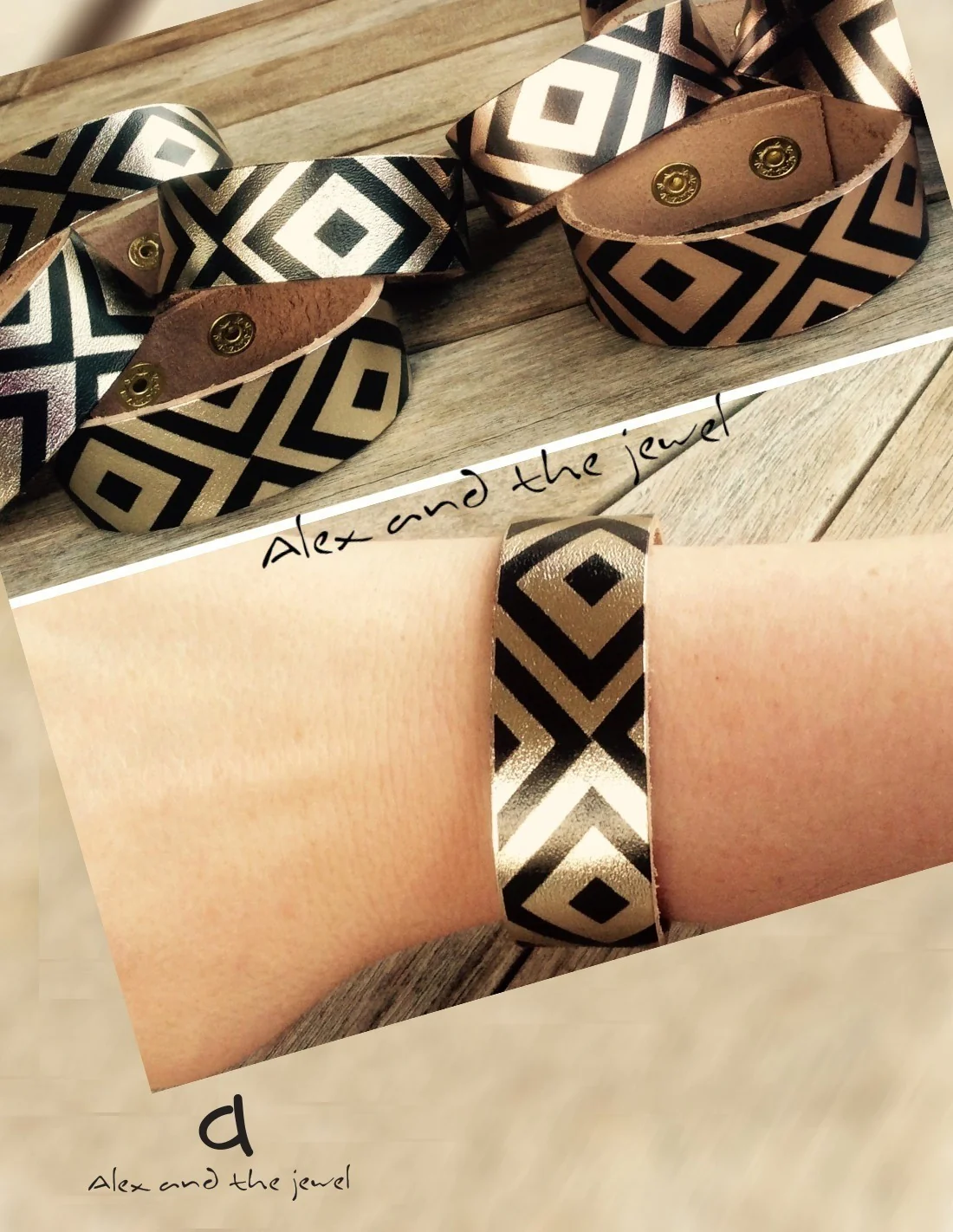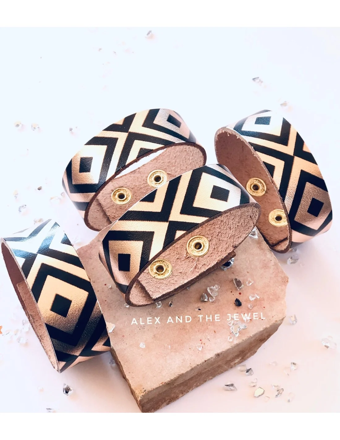 Δεν υπάρχουν άλλα προϊόντα στο καλάθι σαςΧειροποίητο κόσμημα δερμάτινο βραχιόλι με γεωμετρικά σχέδια σε μαύρο με ροζ χρυσό ή χρυσό και ρυθμιζόμενο κούμπωμα Aztec