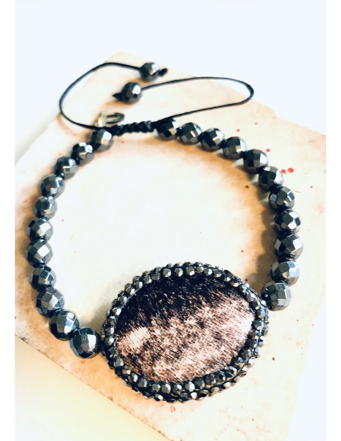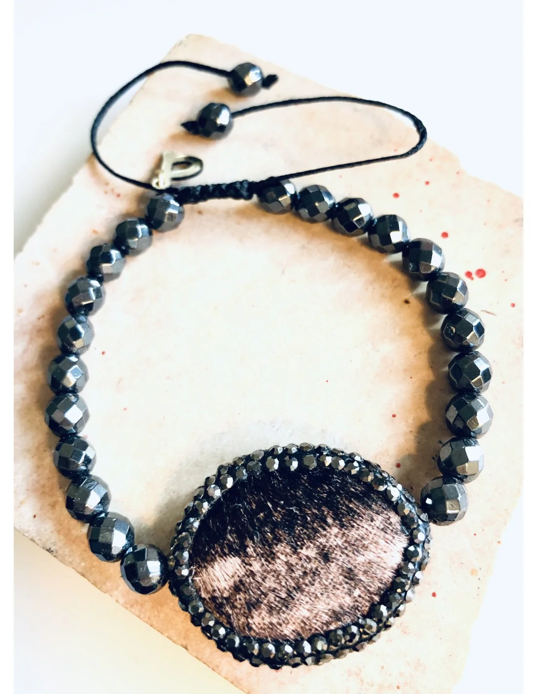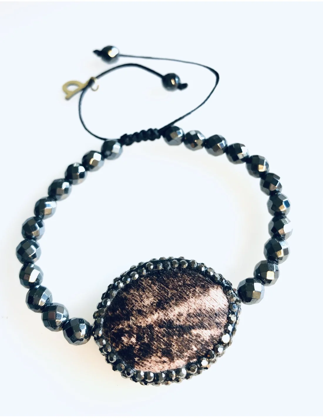 Βραχιόλι "Theodora" με Ημιπολύτιμες Πέτρες Αιματίτη και Animal Print Στοιχείο