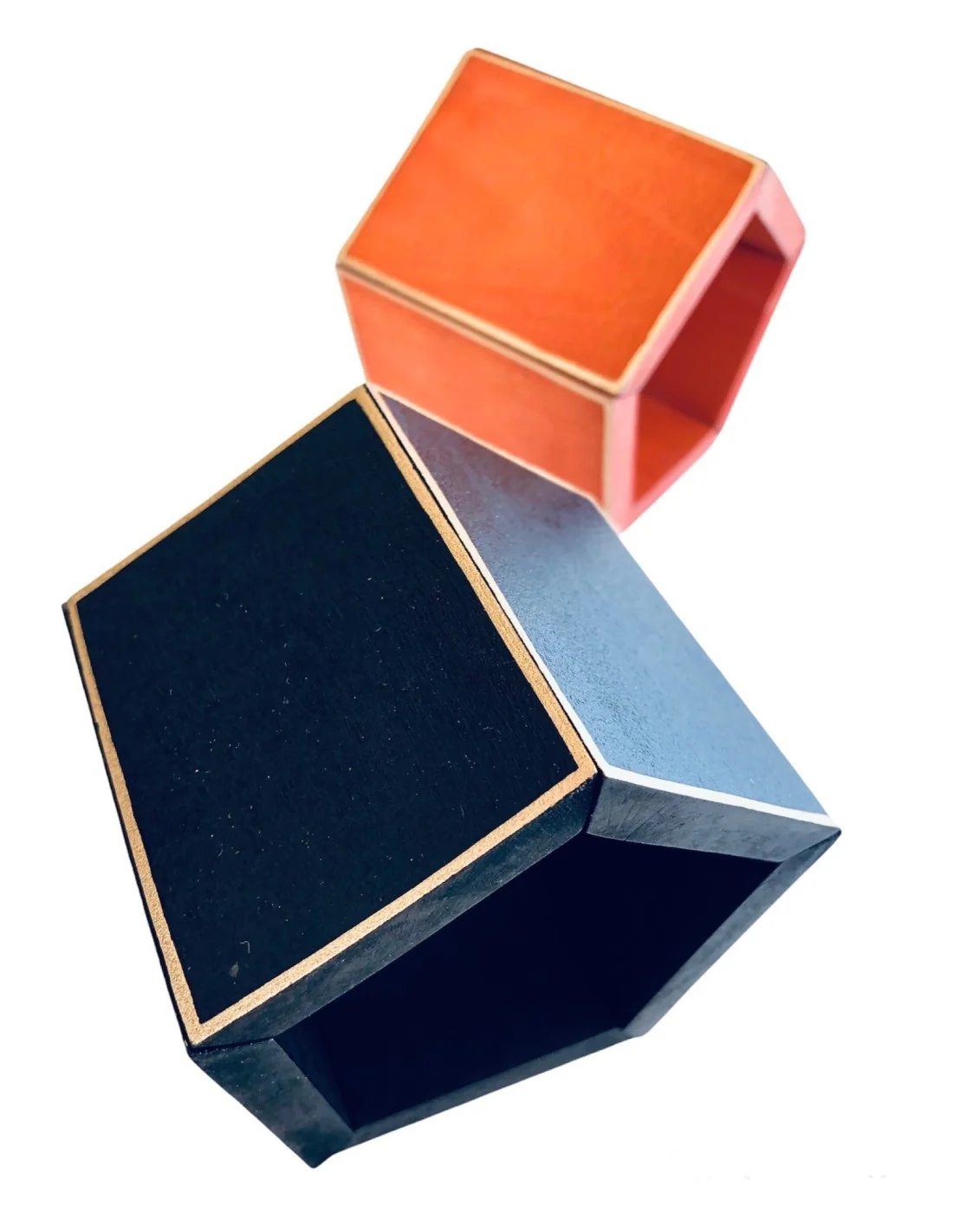 Χειροποίητο γυναικείο βραχιόλι από ξύλο σε μαύρο ή πορτοκαλί με χρυσές λεπτομέρειες ζωγραφισμένες στο χέρι Pentagon