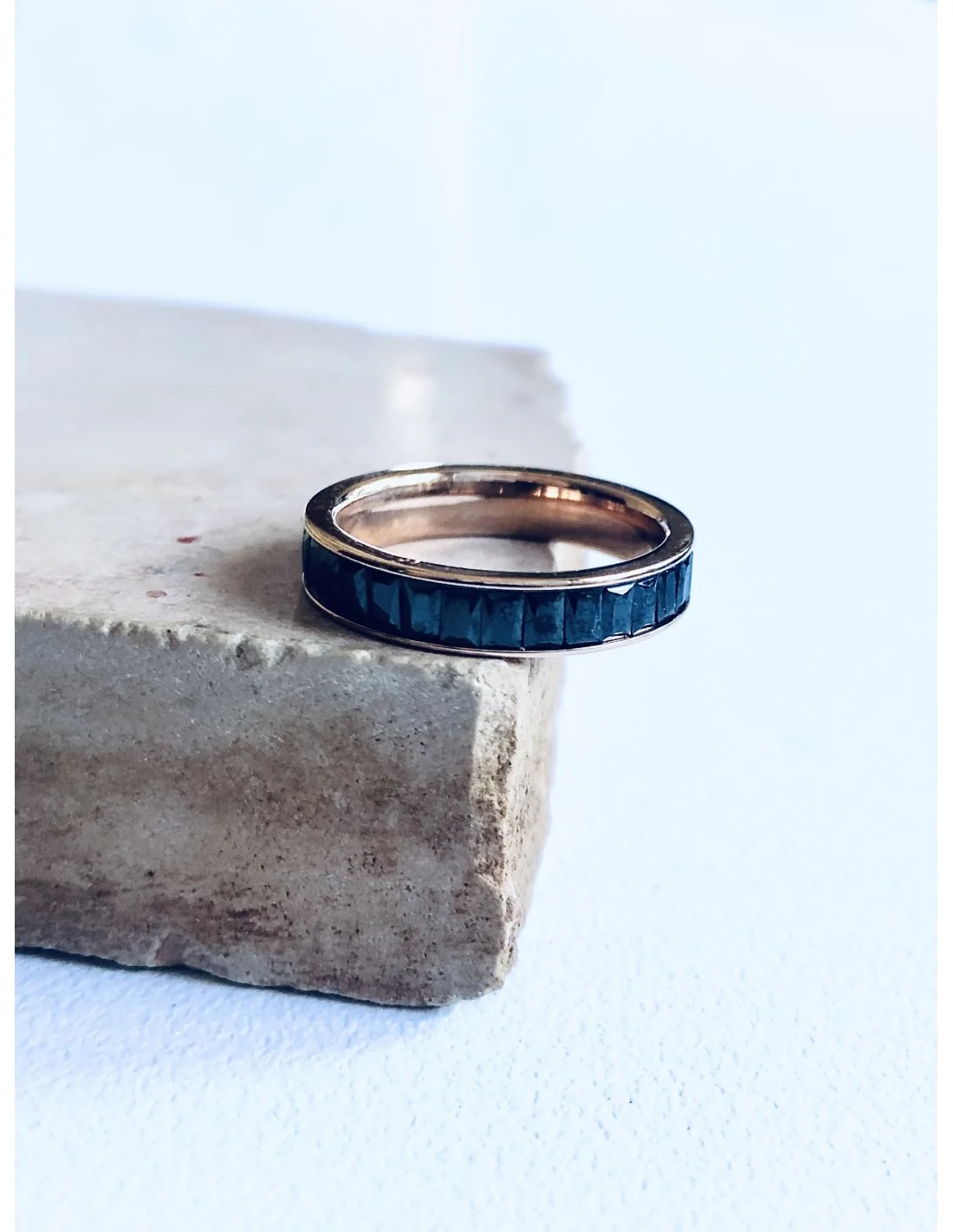 Γυναικείο Δαχτυλίδι από Ατσάλι με Μαύρα Κρύσταλλα Lorka