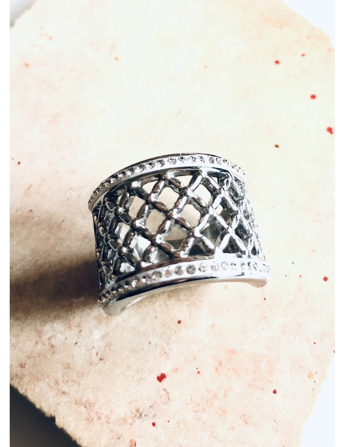 Γυναικείο Διάτρητο Ασημί Δαχτυλίδι από Ατσάλι Evridiki