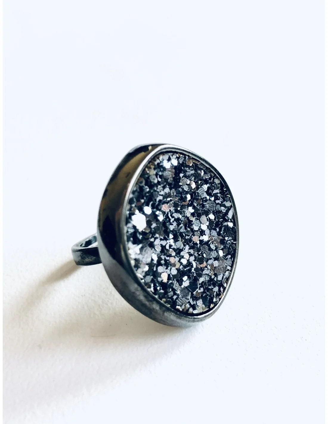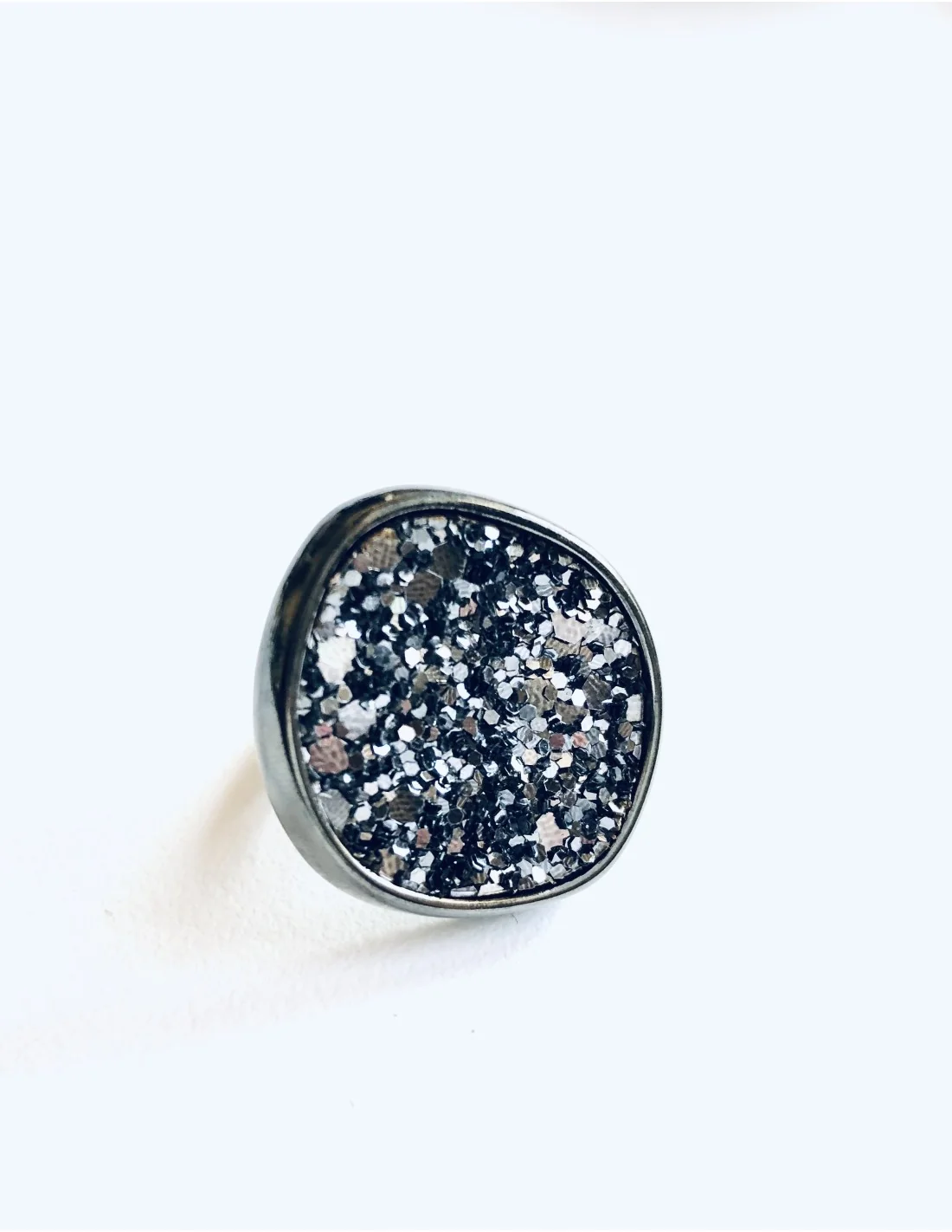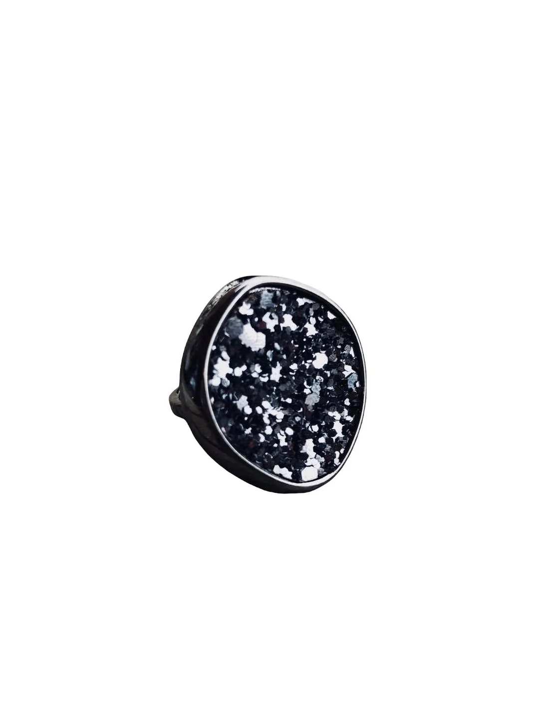 Γυναικείο Δαχτυλίδι Στρογγυλό με Μαύρο Γκλίτερ Apollonia