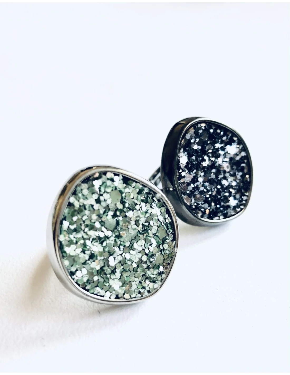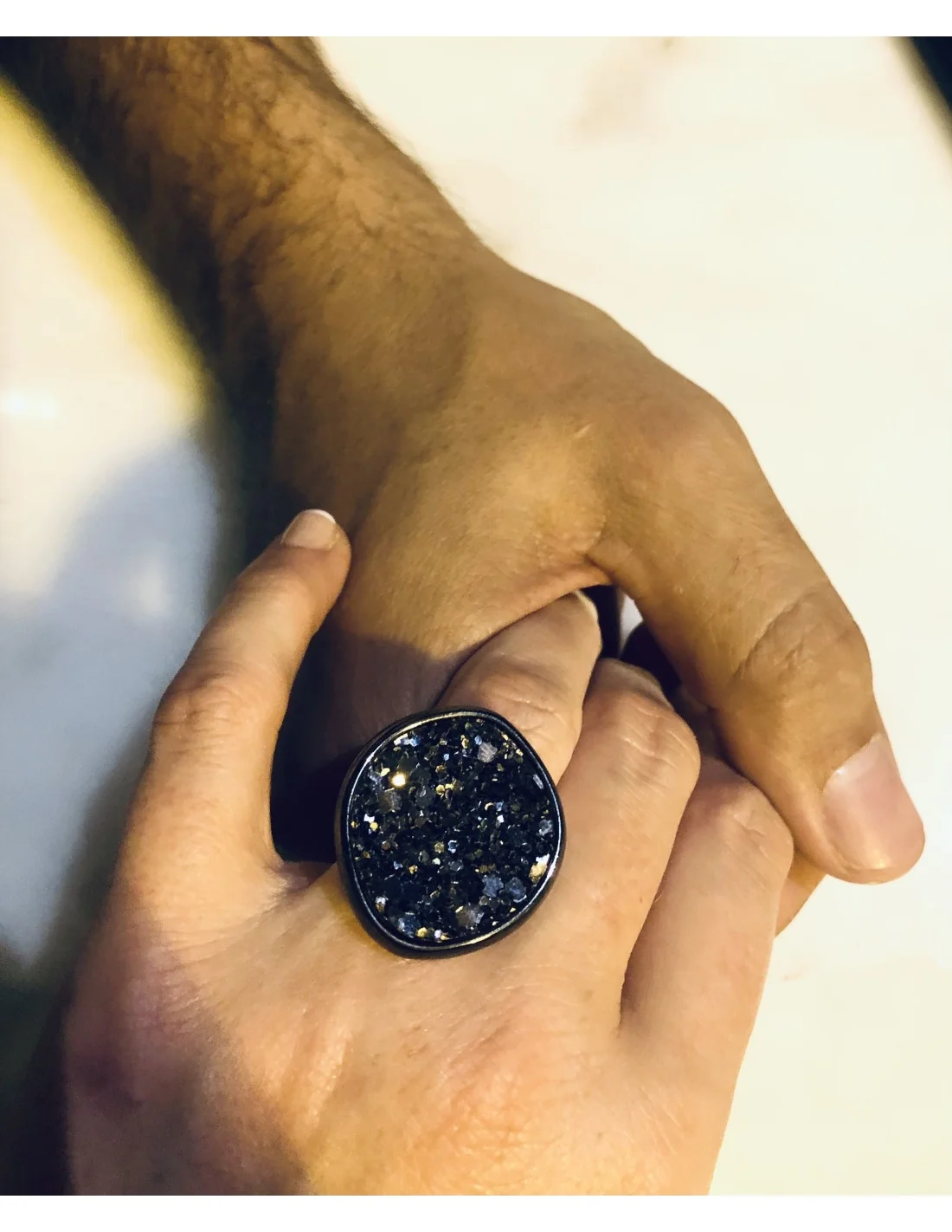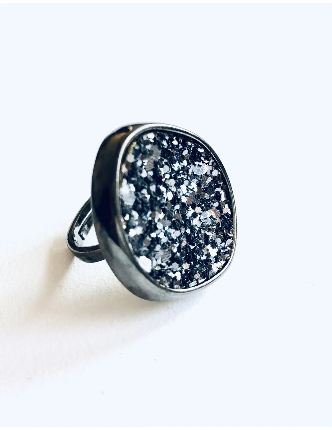 Γυναικείο Δαχτυλίδι Στρογγυλό με Μαύρο Γκλίτερ Apollonia