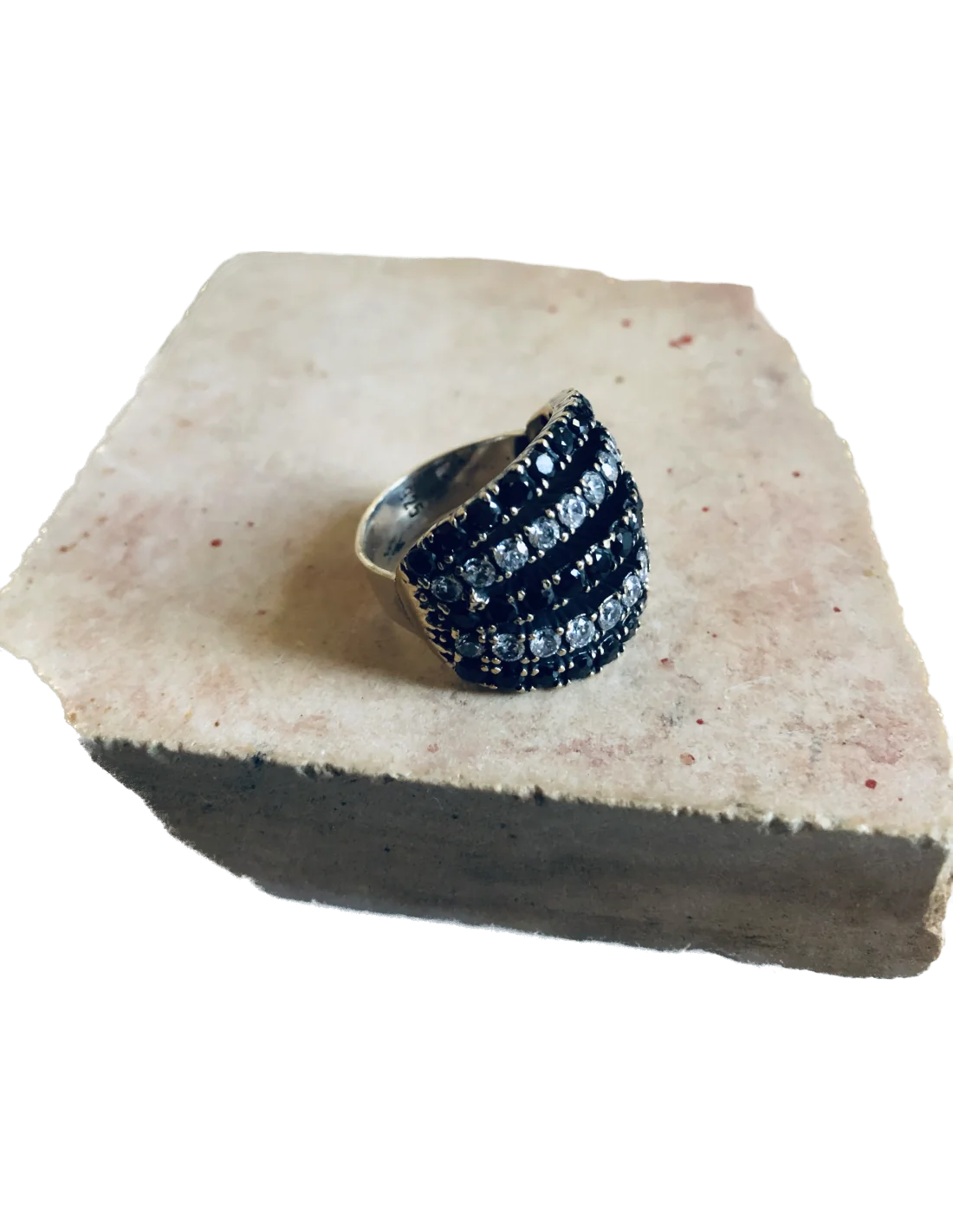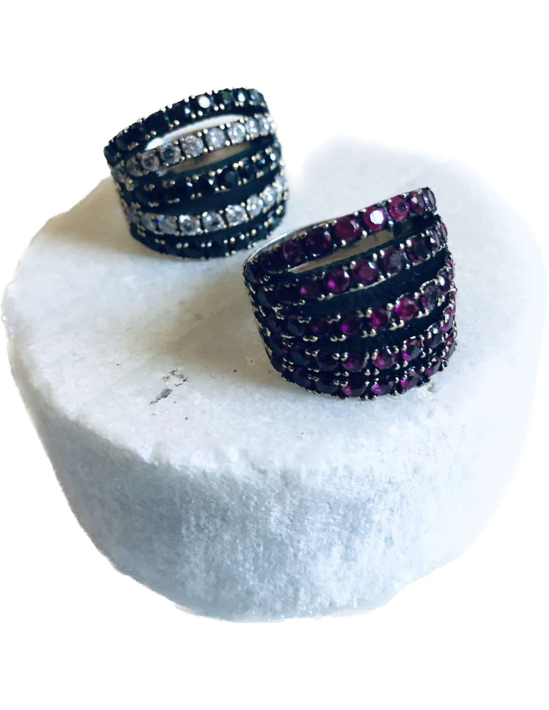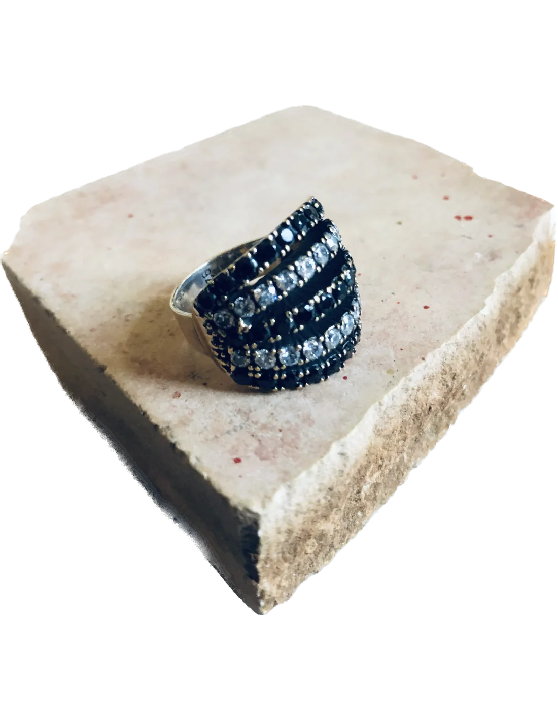 Δαχτυλίδι από ασήμι 925 και κρύσταλλα Τσεχίας σε άσπρο- μαύρο ή ρουμπινί Goddess