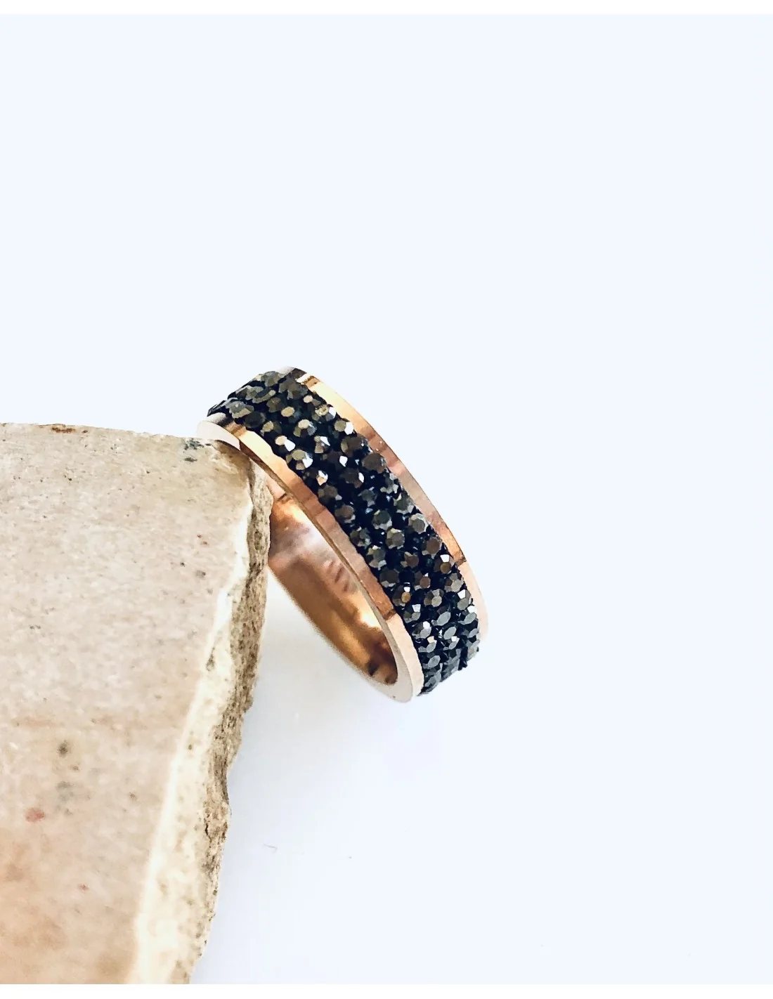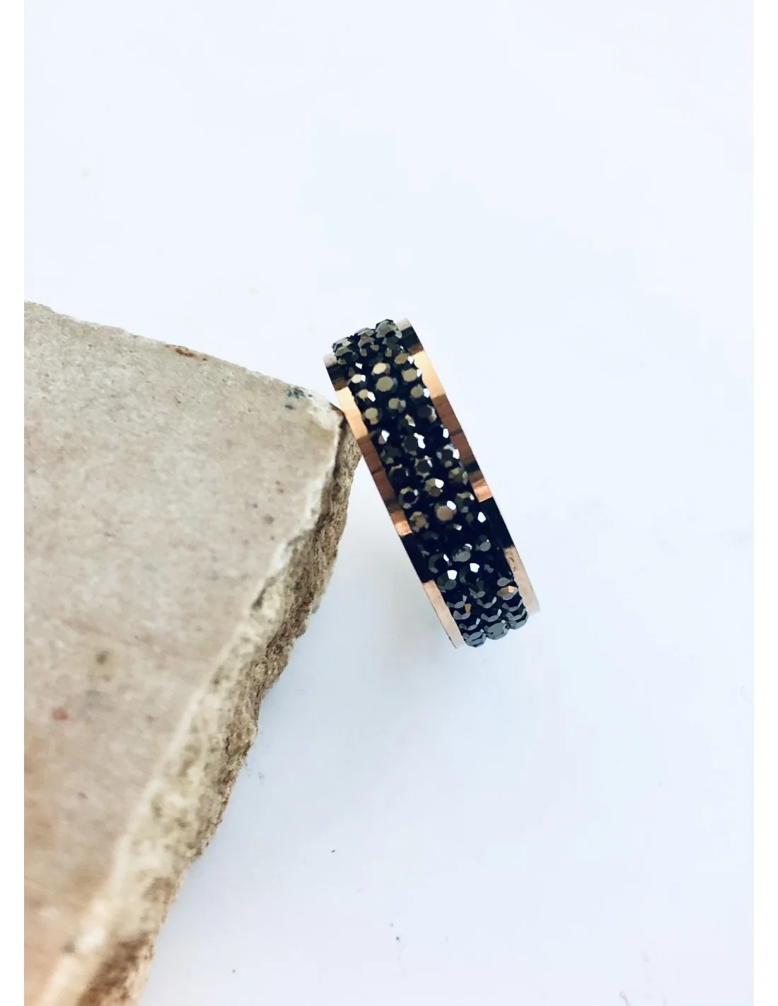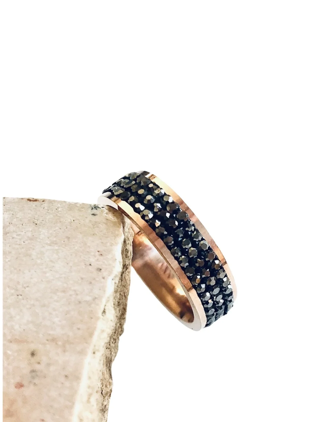 Κατασκευασμένο από ανθεκτικό ατσάλι με ροζ χρυσό φινίρισμα, το δαχτυλίδι "Arlin" είναι διακοσμημένο με μαύρα ζιργκόν, προσφέροντας μια εντυπωσιακή και μοντέρνα αίσθηση.