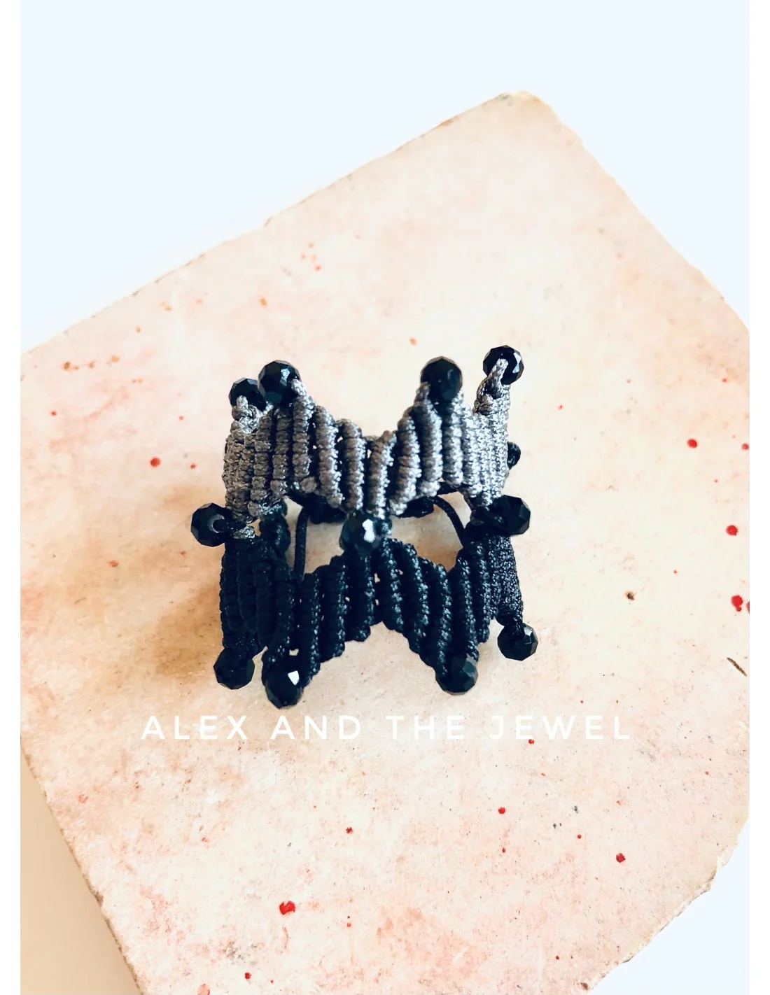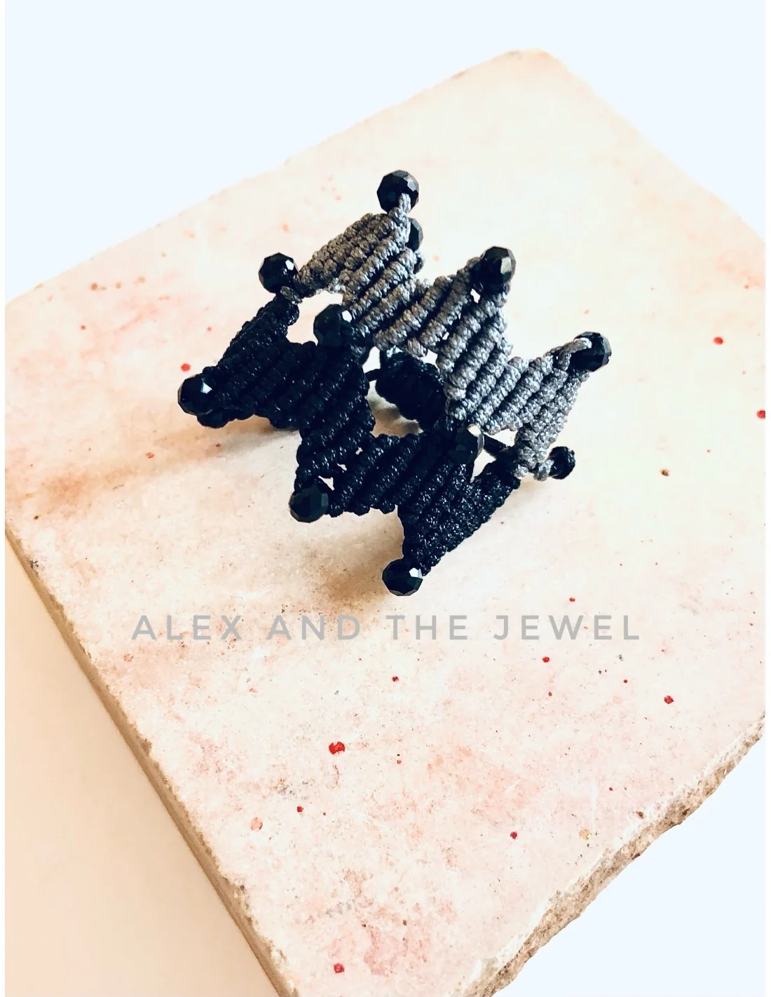 - Υλικό: Χειροποίητο δαχτυλίδι από νήματα μακραμέ σε γκρι και μαύρο χρώμα για μακροχρόνια χρήση.