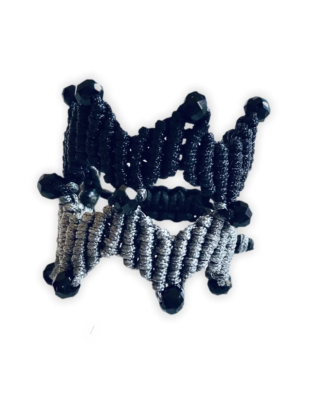 Χειροποίητο Γυναικείο Μακραμέ Ζιγκ Ζαγκ Δαχτυλίδι σε Γκρι και Μαύρο Together