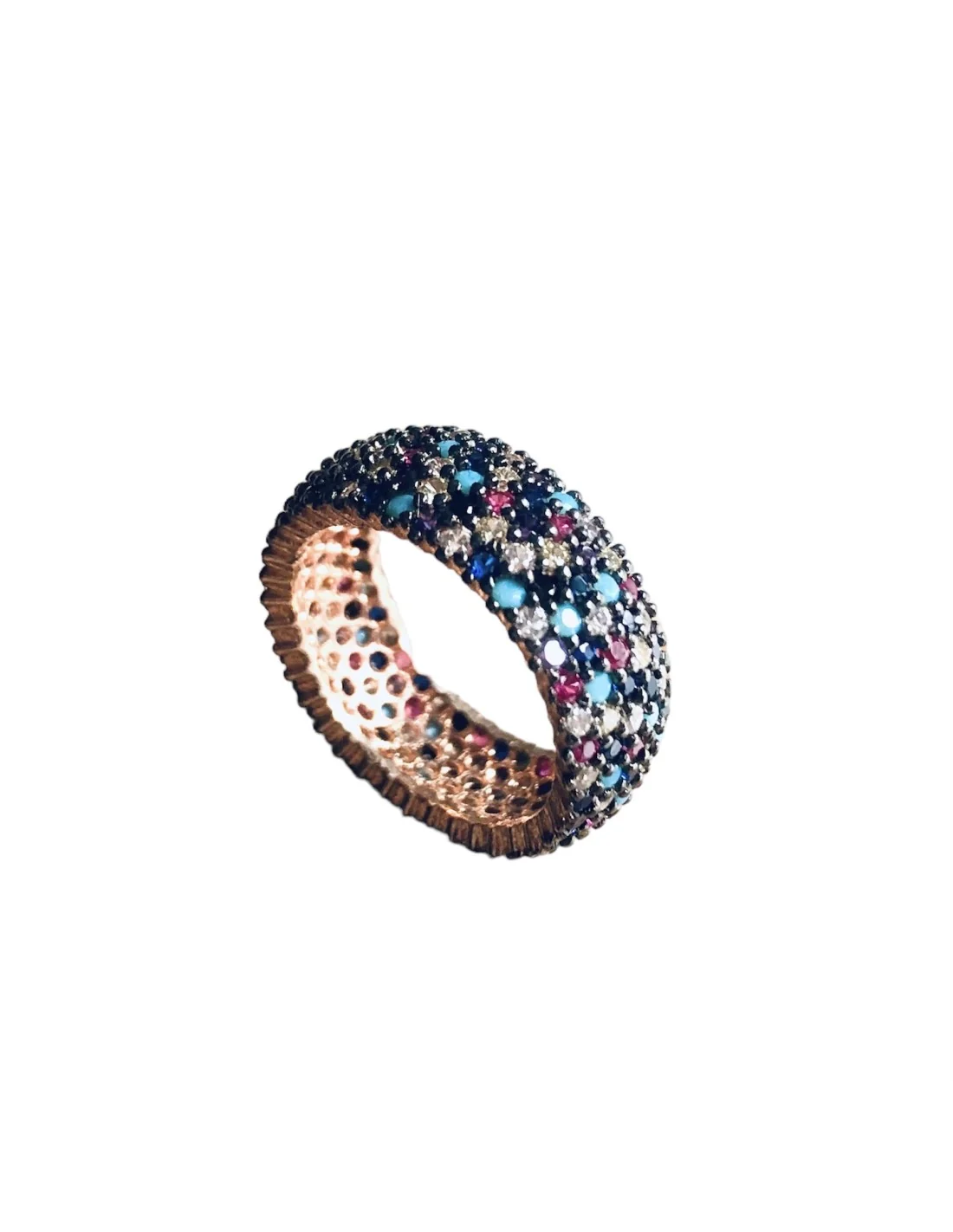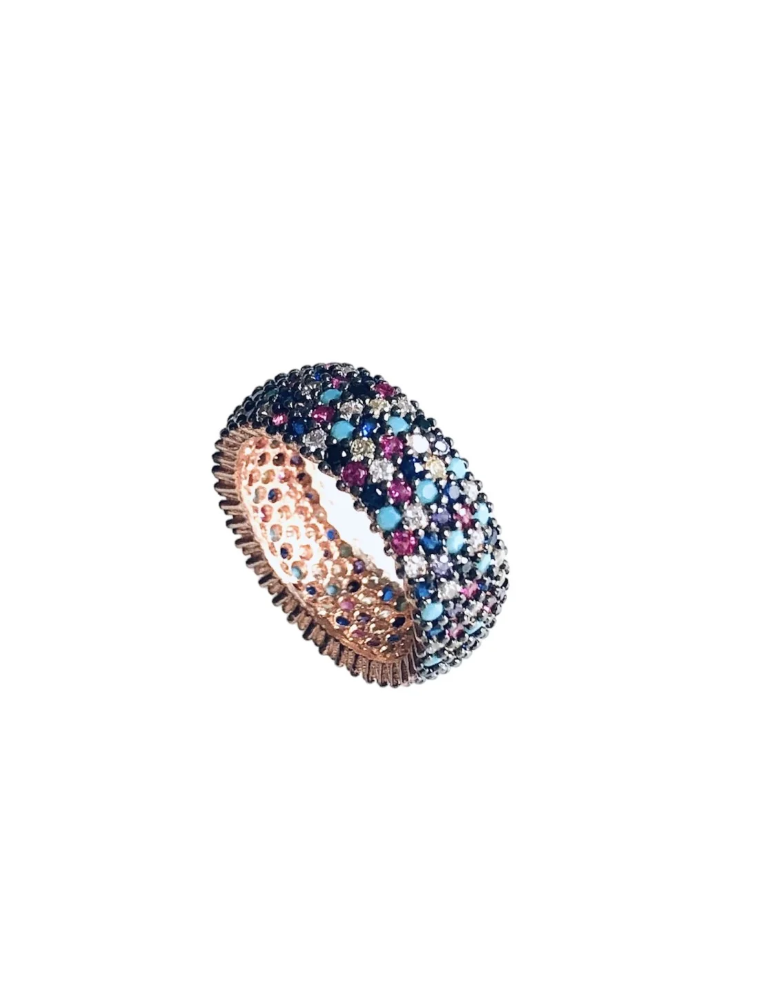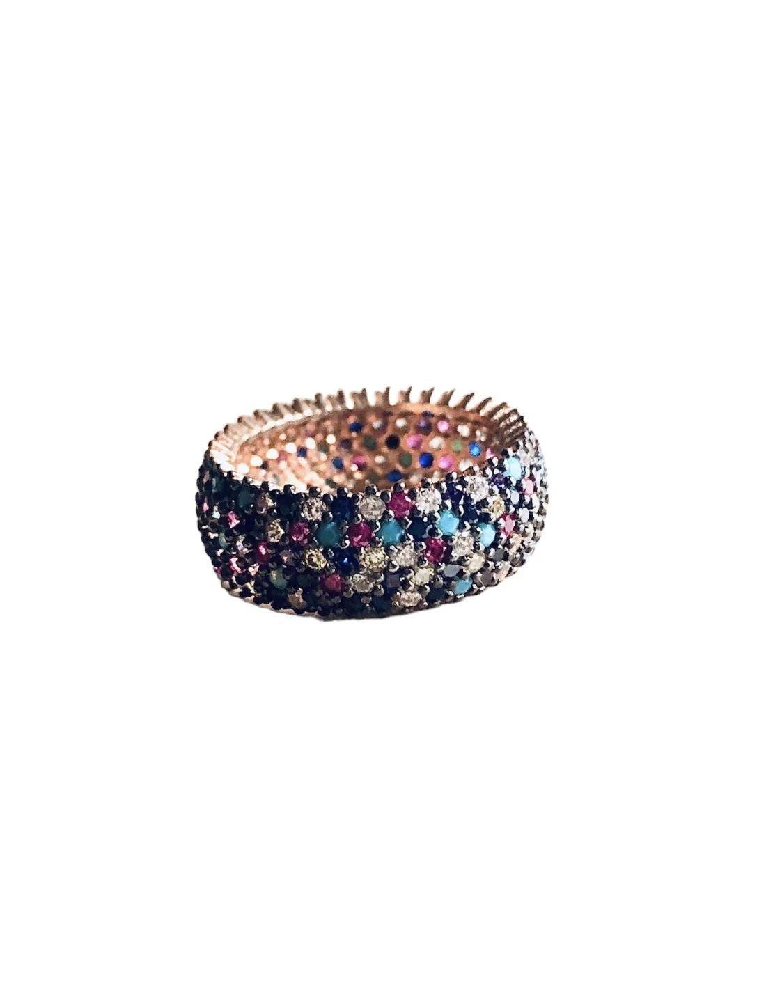 Γυναικείο δαχτυλίδι από ασήμι 925 και καρφωτά χρωματιστά ζιργκόν Sylvie