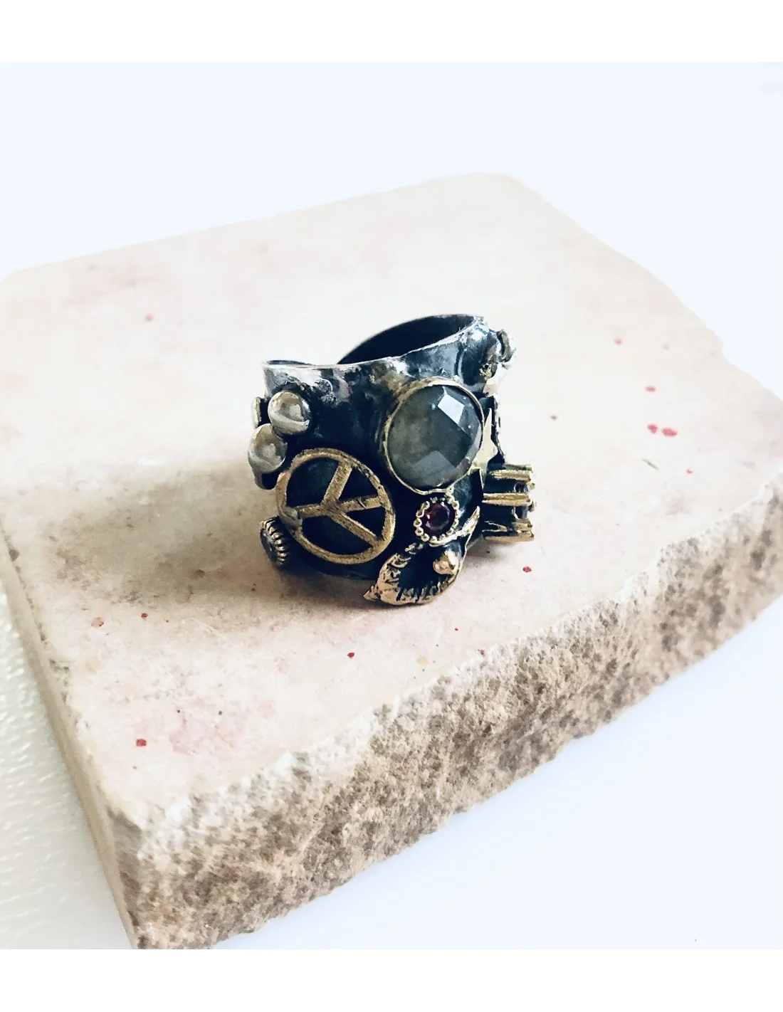 Το μοναδικό παλαιωμένο φινίρισμα του δαχτυλιδιού του δίνει μια vintage αισθητική, ενώ το σύμβολο της ειρήνης το καθιστά σύγχρονο και διαχρονικό.