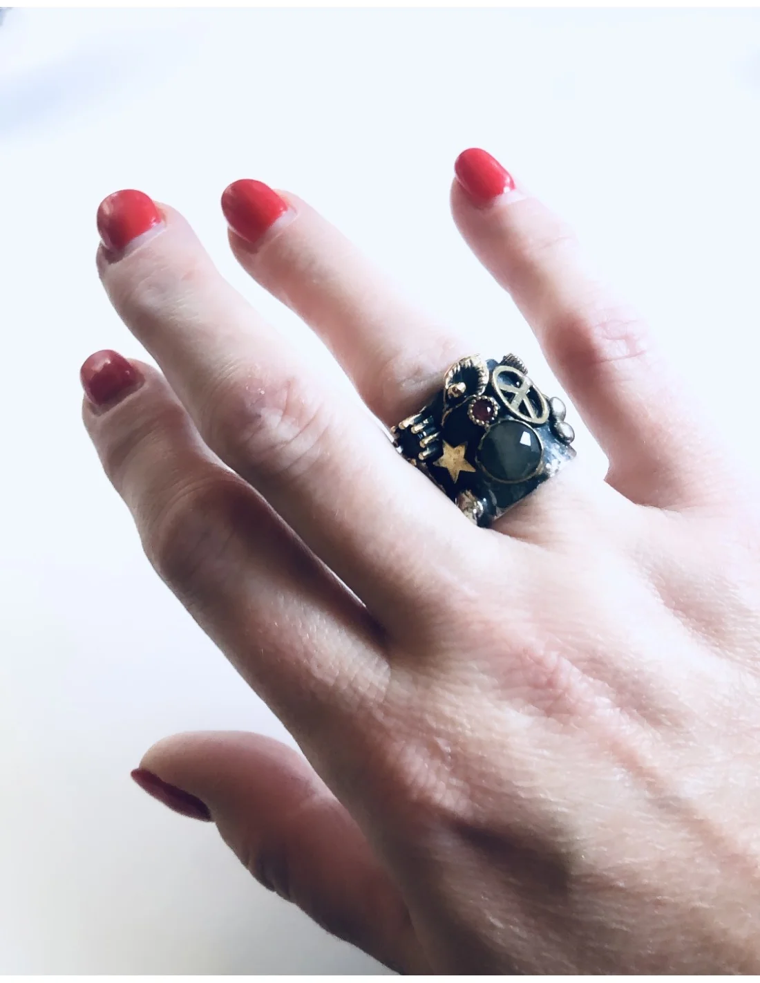 Ανακαλύψτε την αυθεντική ομορφιά του χειροποίητου ασημένιου δαχτυλιδιού Peace, κατασκευασμένου από παλαιωμένο ασήμι 925.